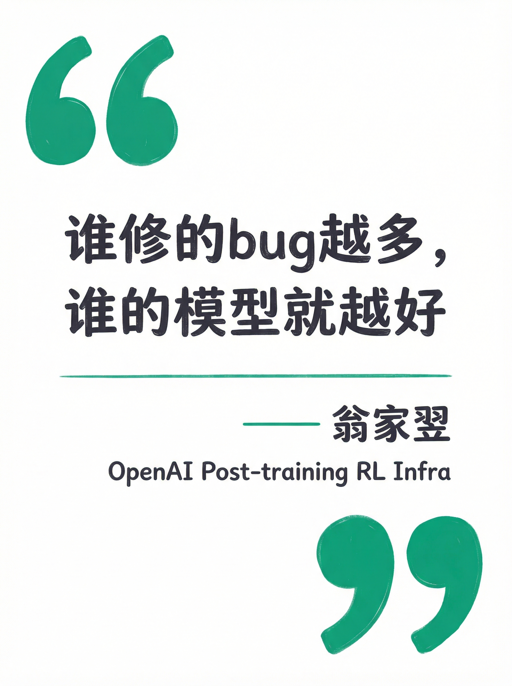 最近看了 OpenAI 核心贡献者翁家翌的访谈。他直言:“谁修的 bug 越多,谁的模型就越好。”把 bug 全修了,算法可能连改都不用改。
