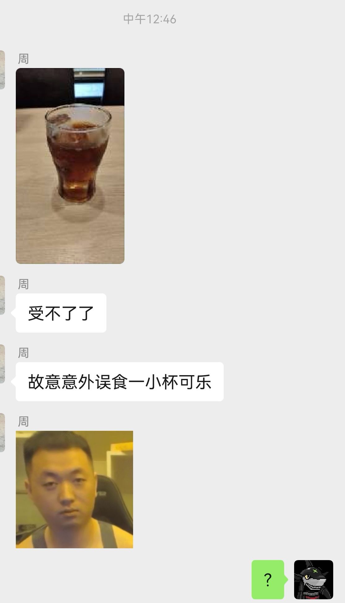 场下的三个人相互传递着一杯可乐,感觉真的好好!