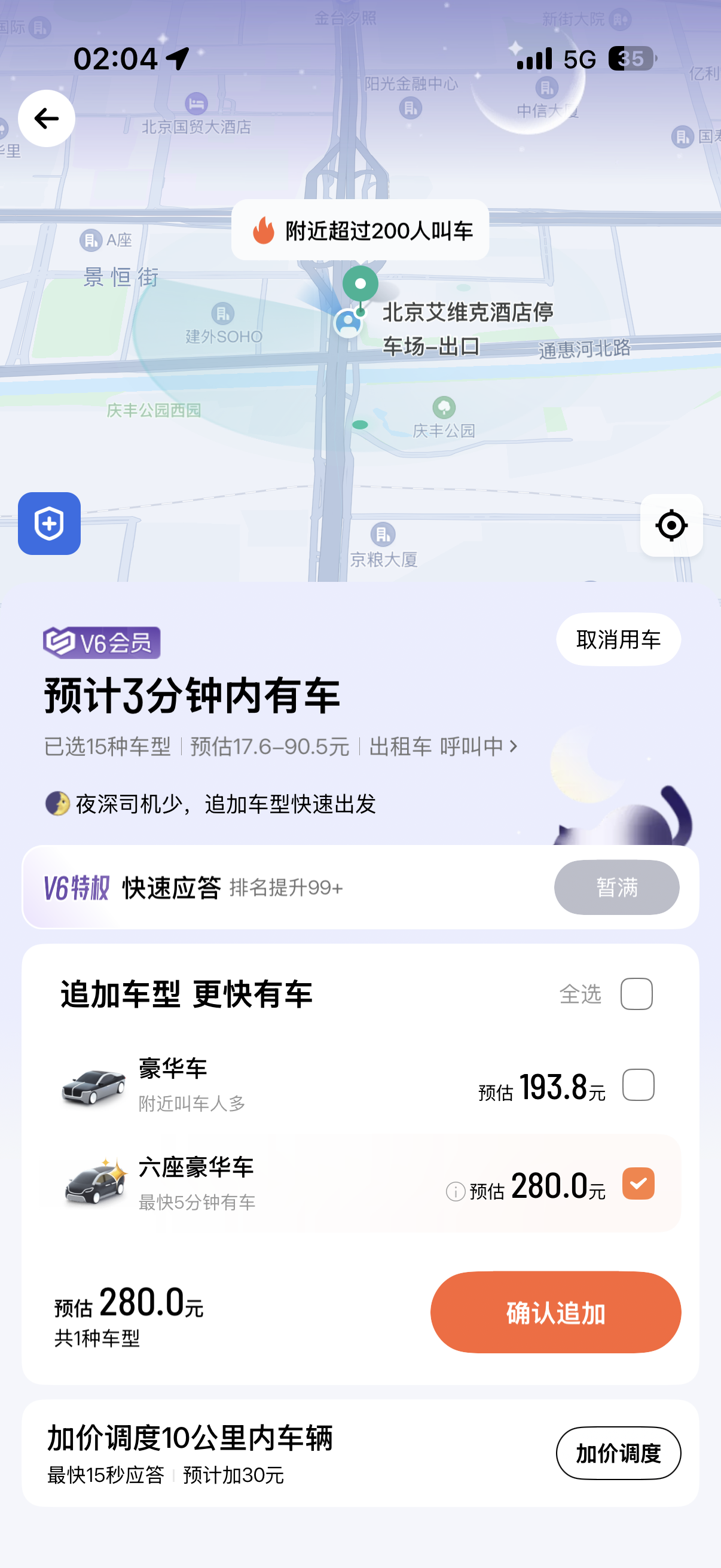 2️⃣忘了国贸是半夜打车集中地,以及今夜有雪供给紧缺,打车遇到和200人一起竞争有限的资源未果,滴滴高德双平台都打不到;
