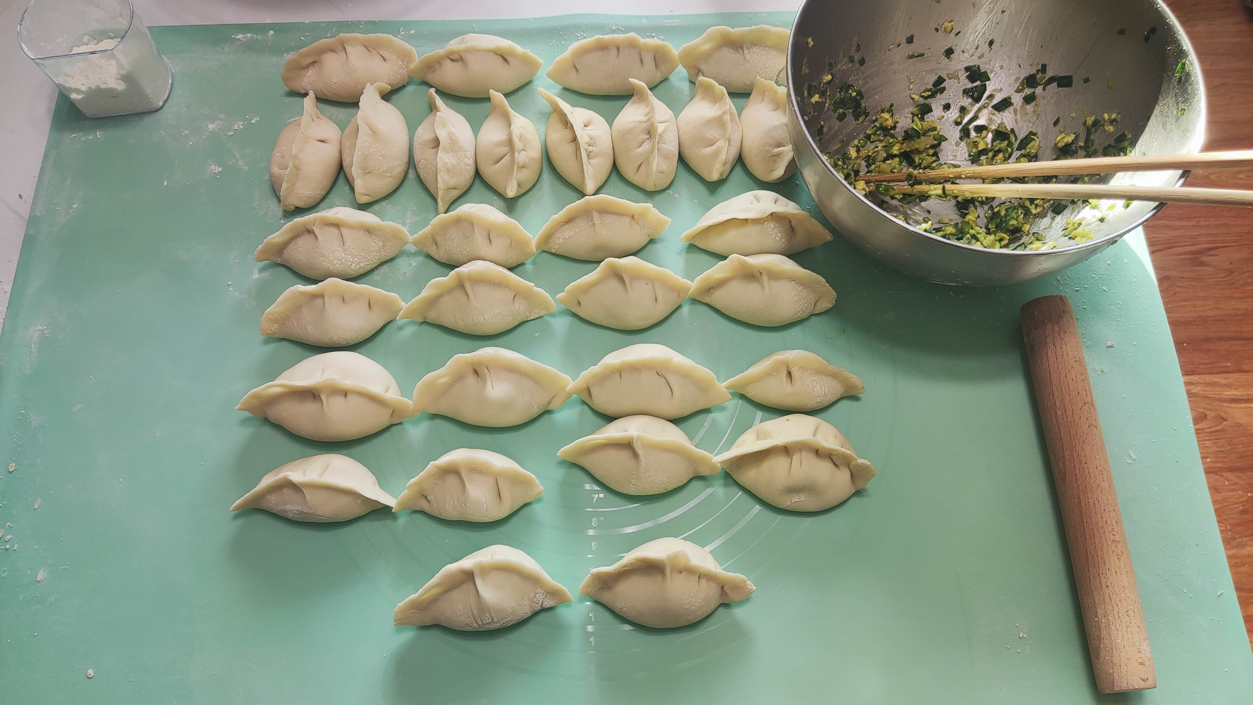 好久没有包饺子,切剂子擀面皮时,大小没有掌握好,包成了巨无霸大饺子😂,一个顶三个🥟🥟🥟,七个一盘就能吃得很饱🤣