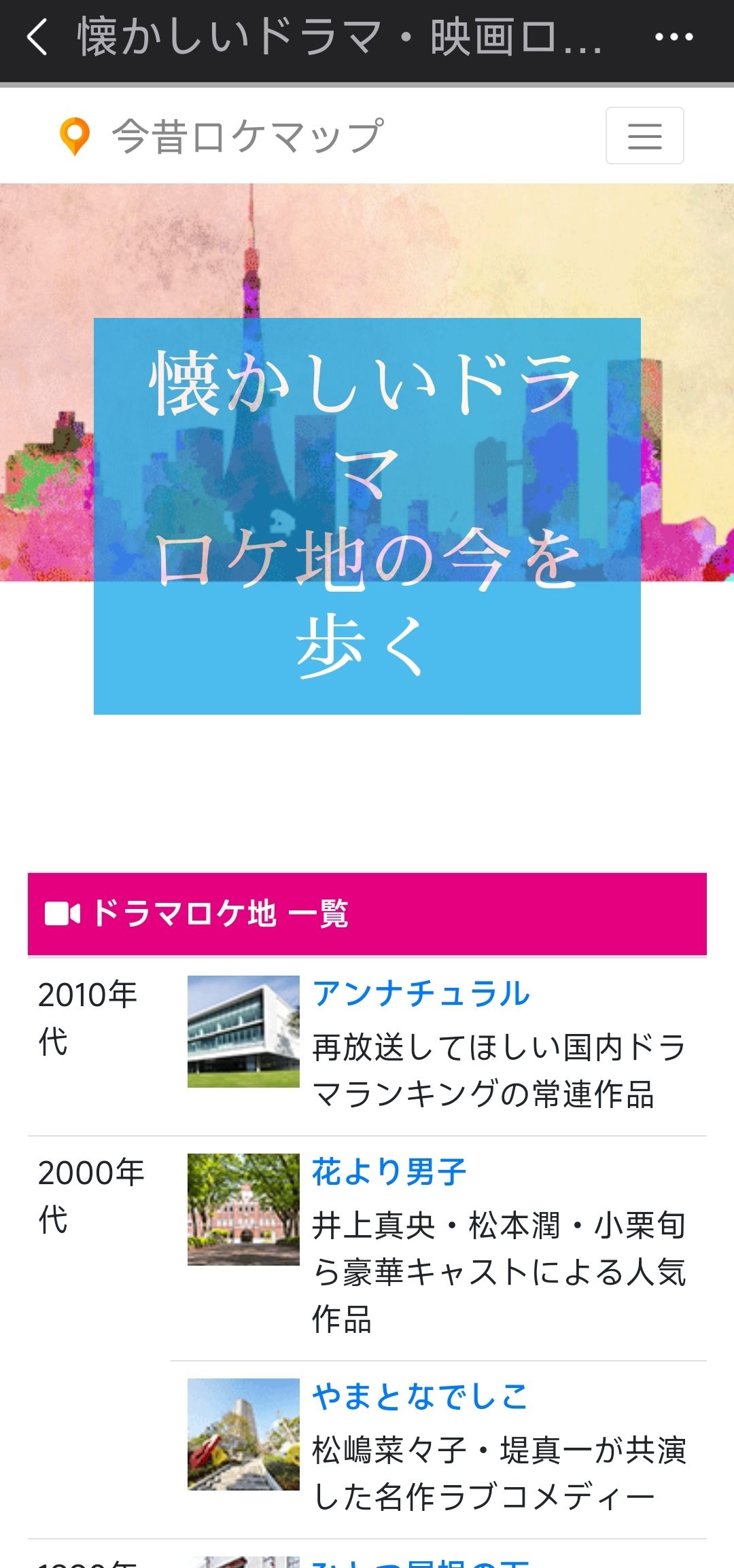,详细介绍了很多日剧日影的取景地,方便影视爱好者前往打卡。 三大爱情剧《东京爱情故事》《悠长假期》《恋爱世纪》的取景地都有收录。
