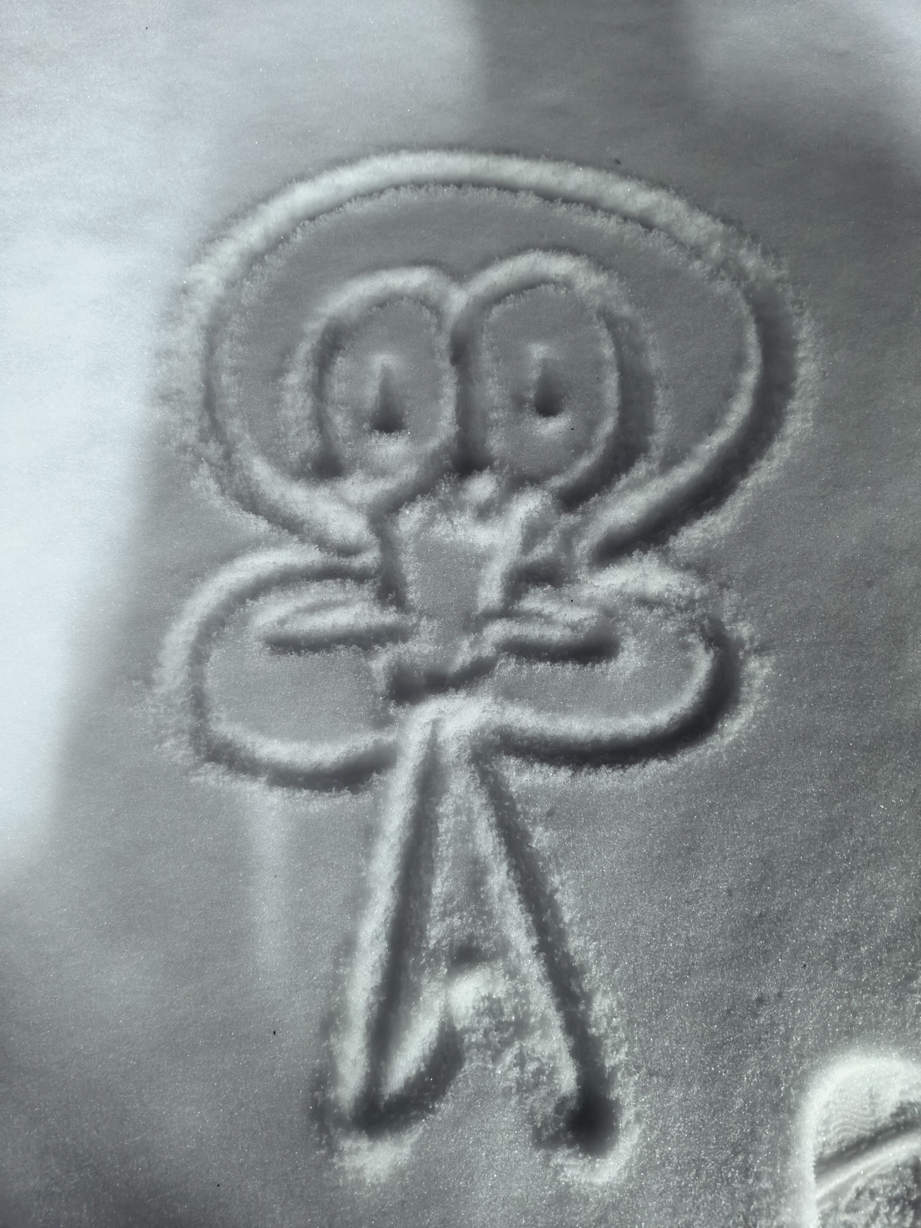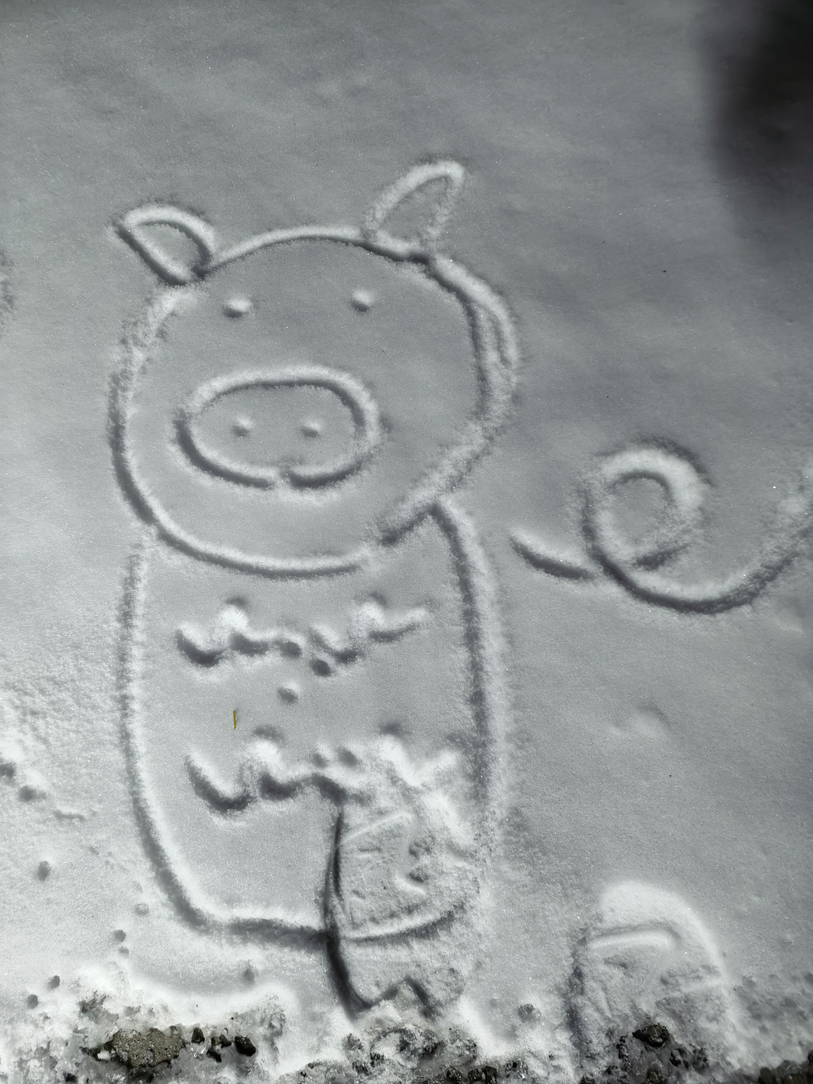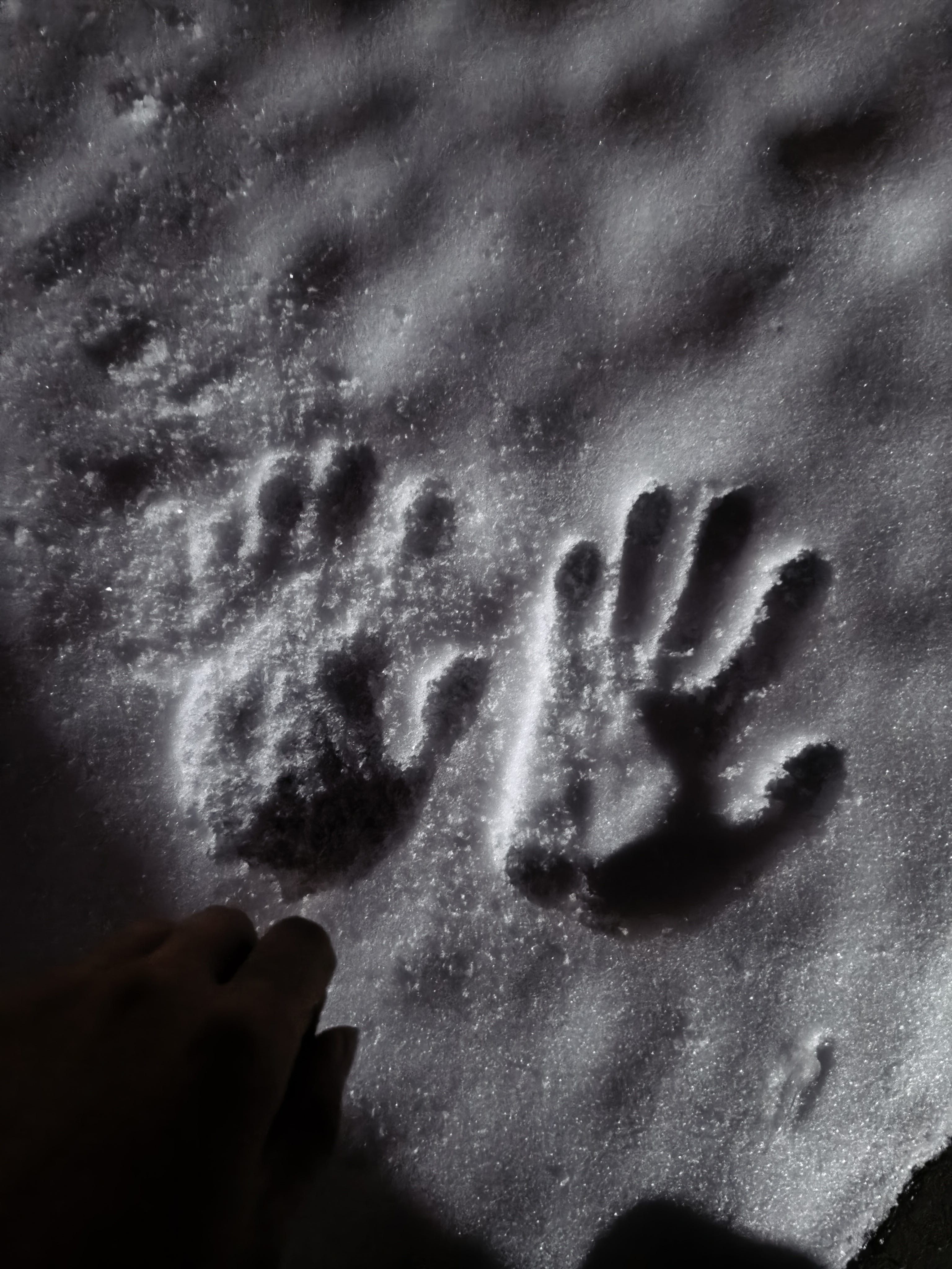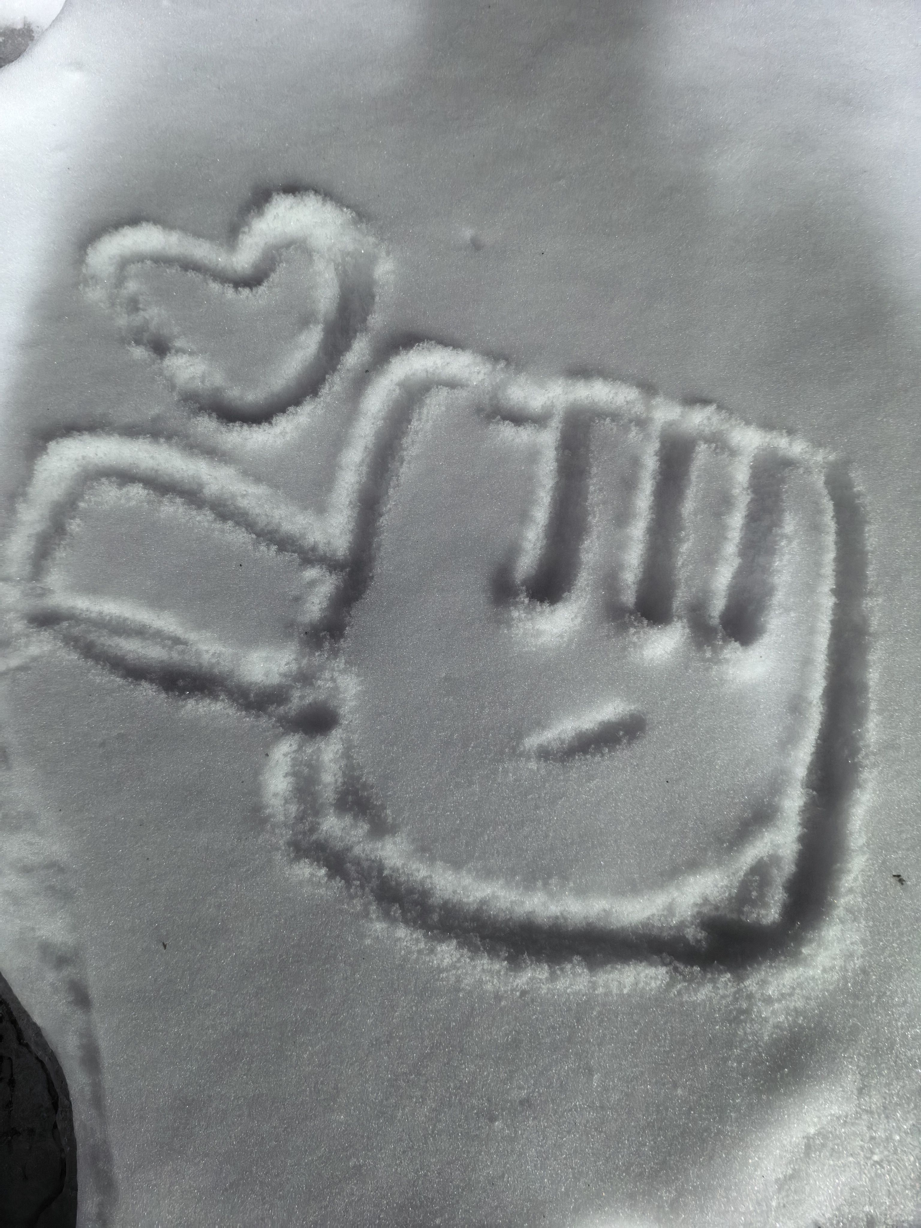躺的一个印记 隔一个小时在看 已经被大雪覆没了! 目前雪深到鞋面。六七厘米厚左右 (躺的时候灌衣服里雪 那酸爽)