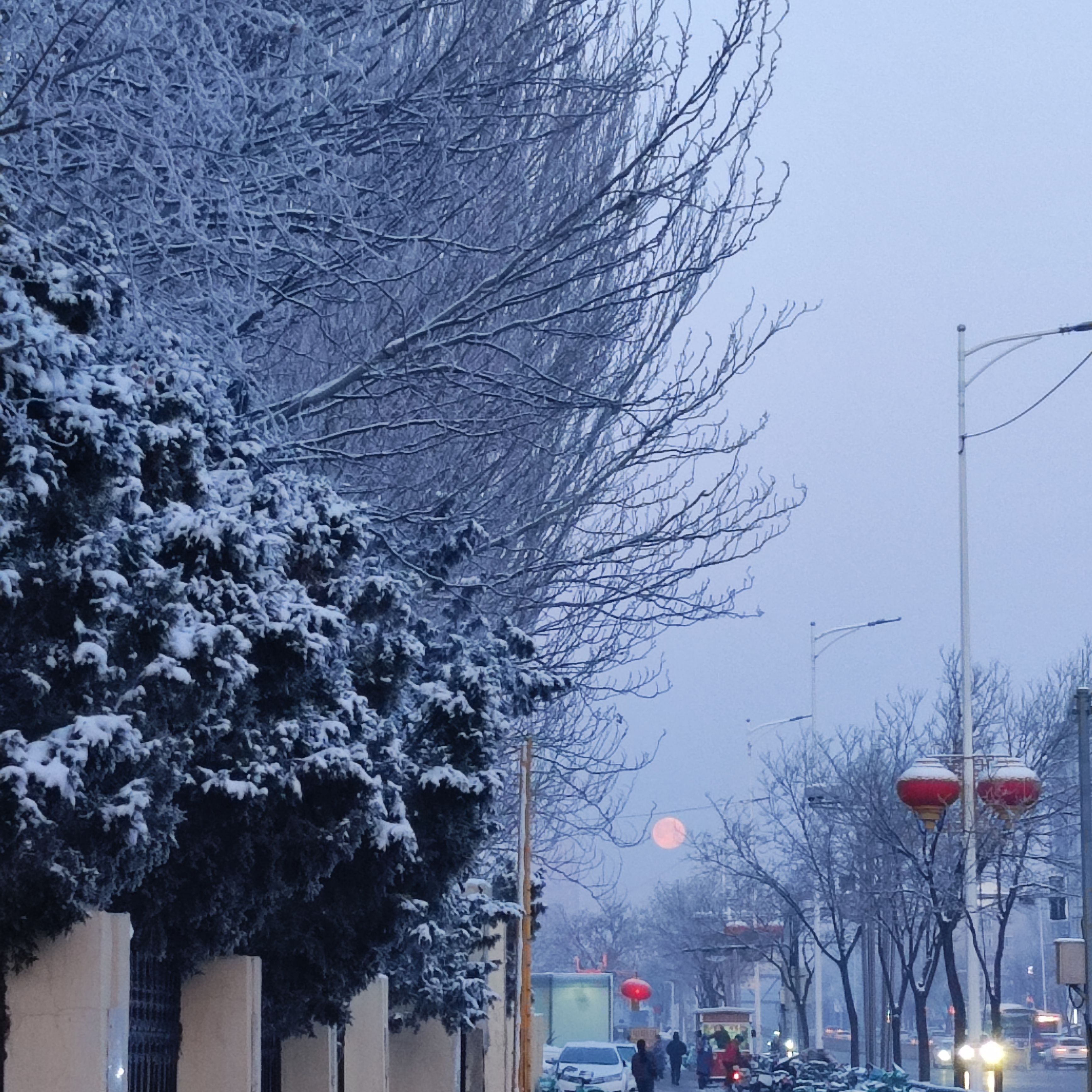 早上还有昨晚的月亮