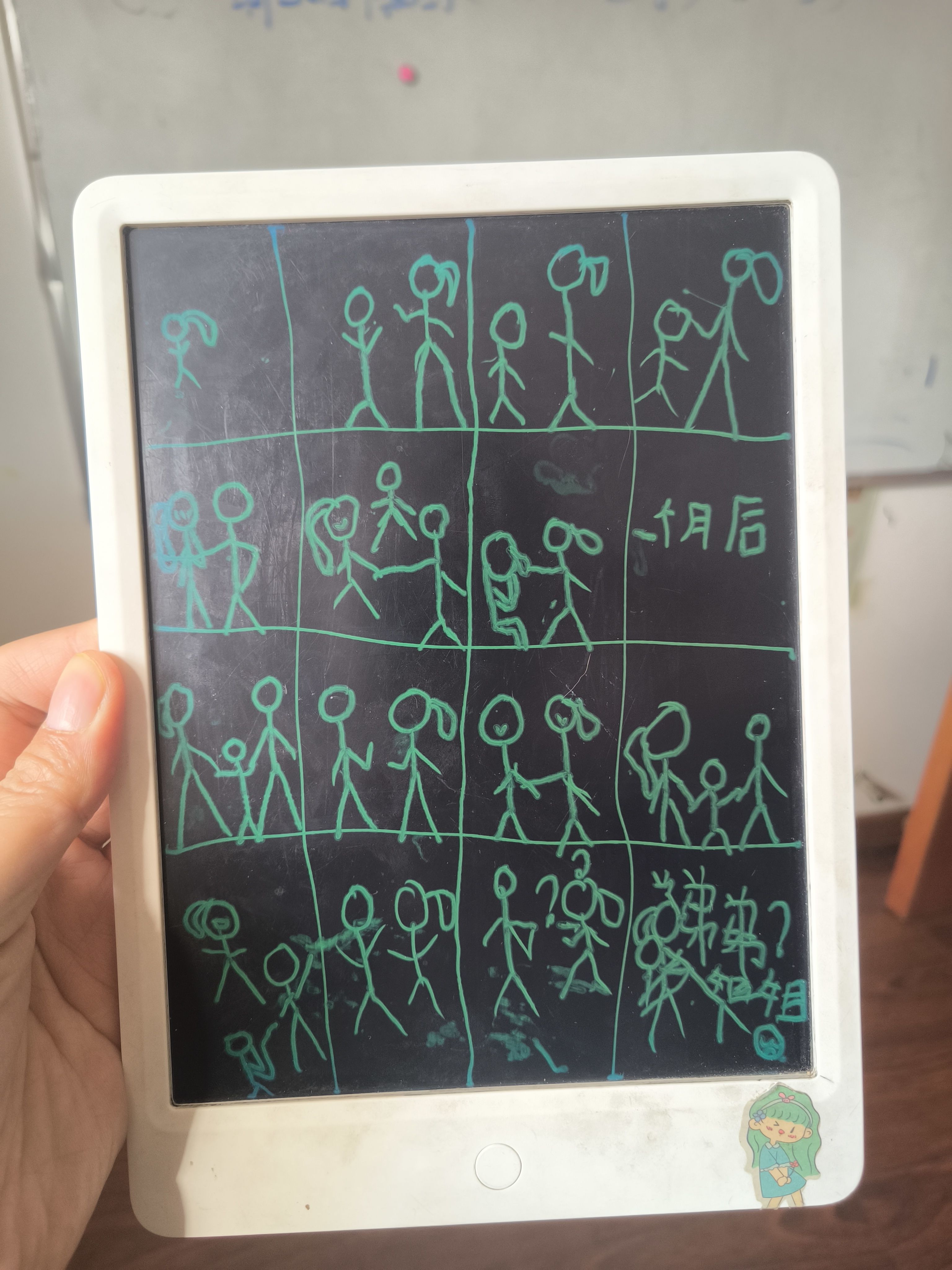 媳妇回娘家了,孩子把自己的思念都画到画里了。