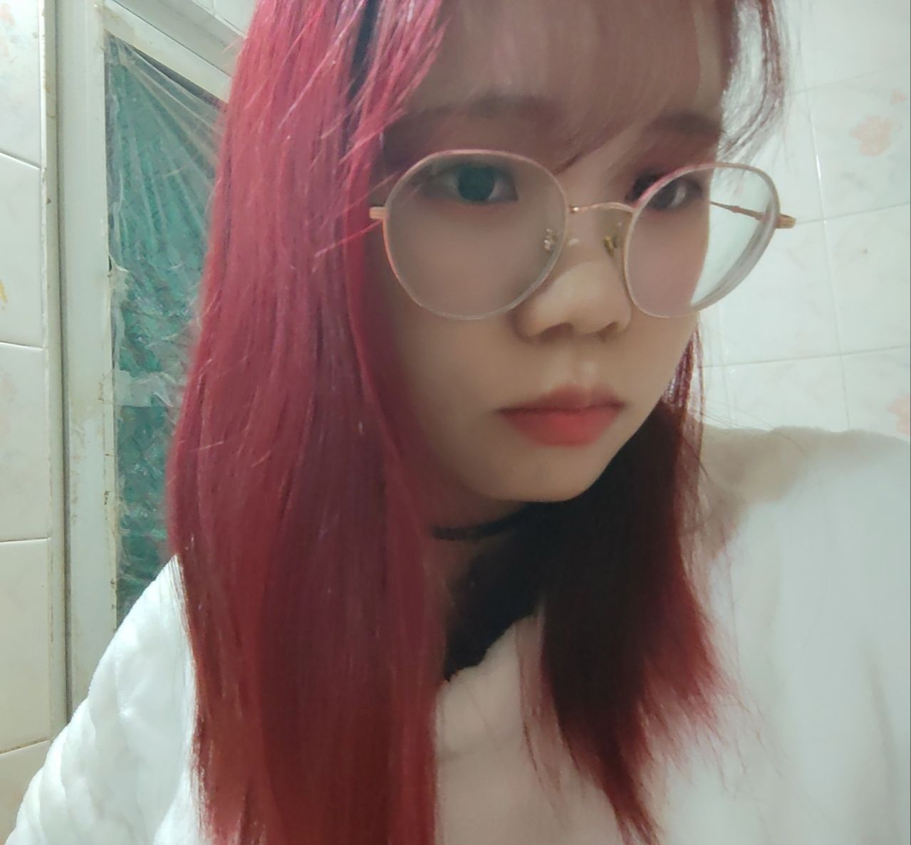 红发已染,颜色是施华蔻湄拉红,这个红有点偏紫调,不是很炸裂的正红,好看喜欢。