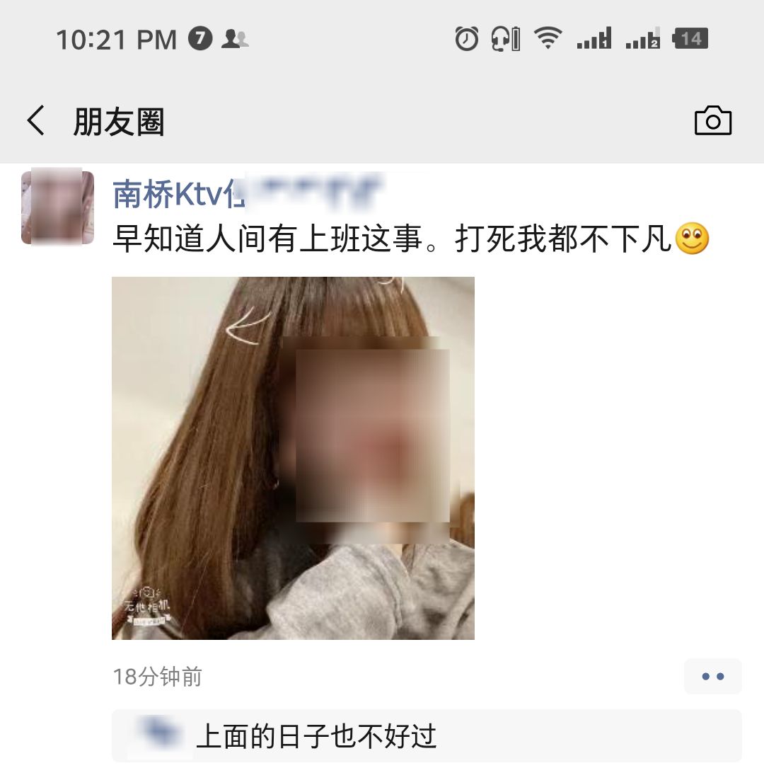在一个KTV小妹的朋友圈发现有人评论。