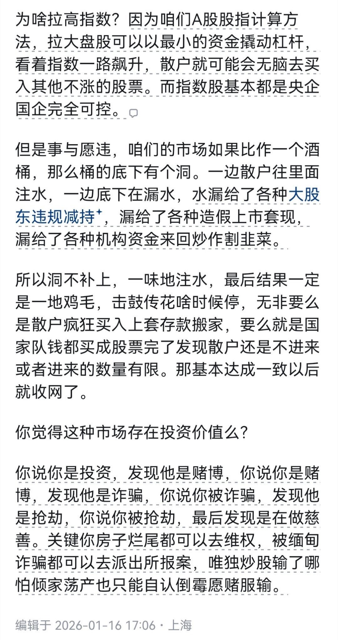 8 空虚的精神世界,没有精神滋养的来源,表现为基本没什么爱好,可能也就是打牌吹牛嚼舌根,或者纯粹的闲不住,一定要让肉体受累了才能感觉到充实