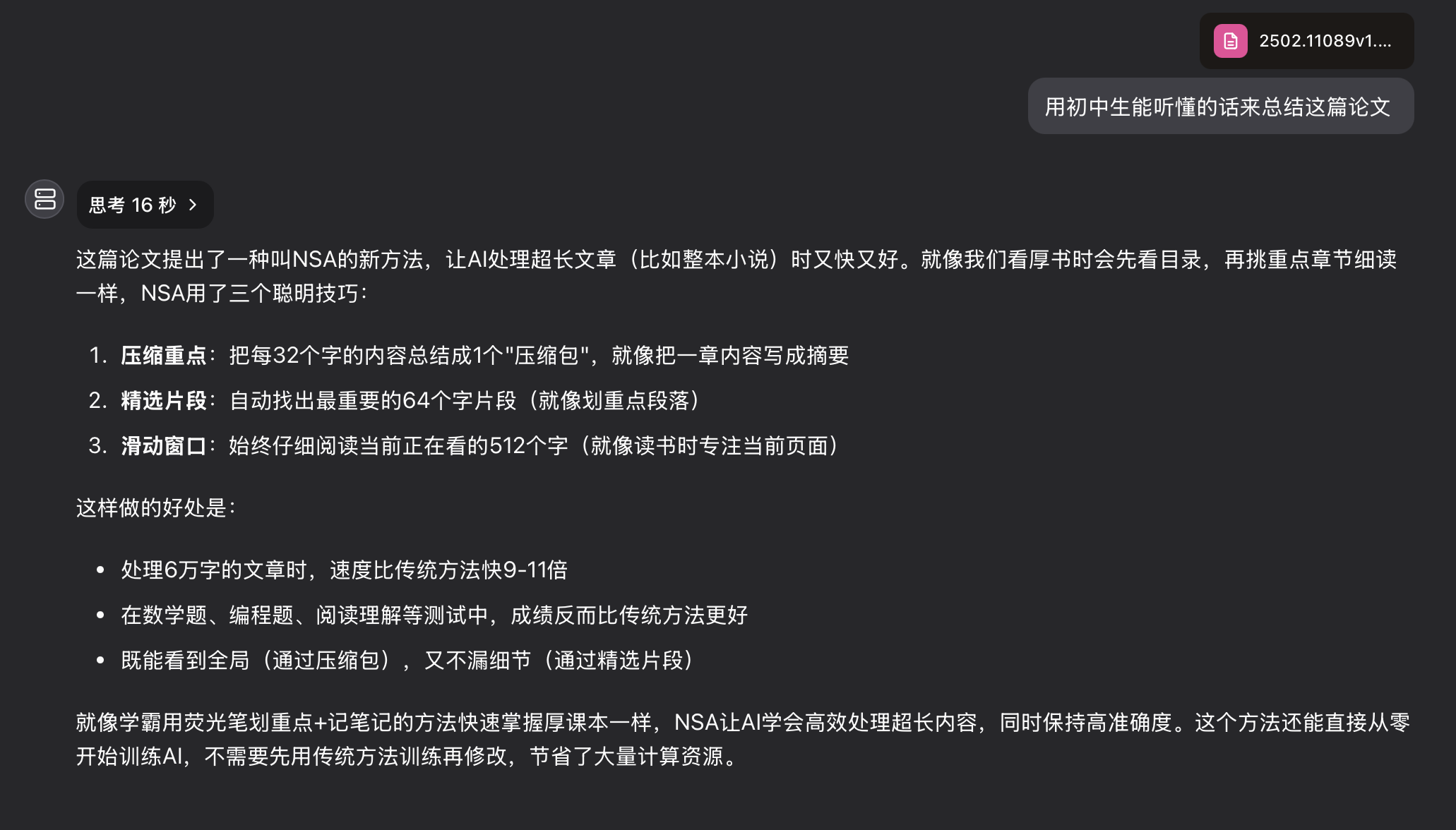 DeepSeek 最新的 NSA 机制论文,让 R1 总结了一个适合我理解的版本😂
