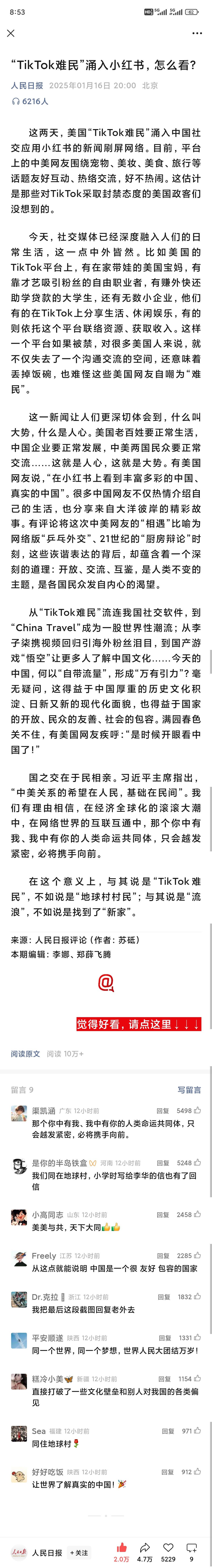 那么这是人民日报对 “Tik Tok 难民事件” 的态度👇