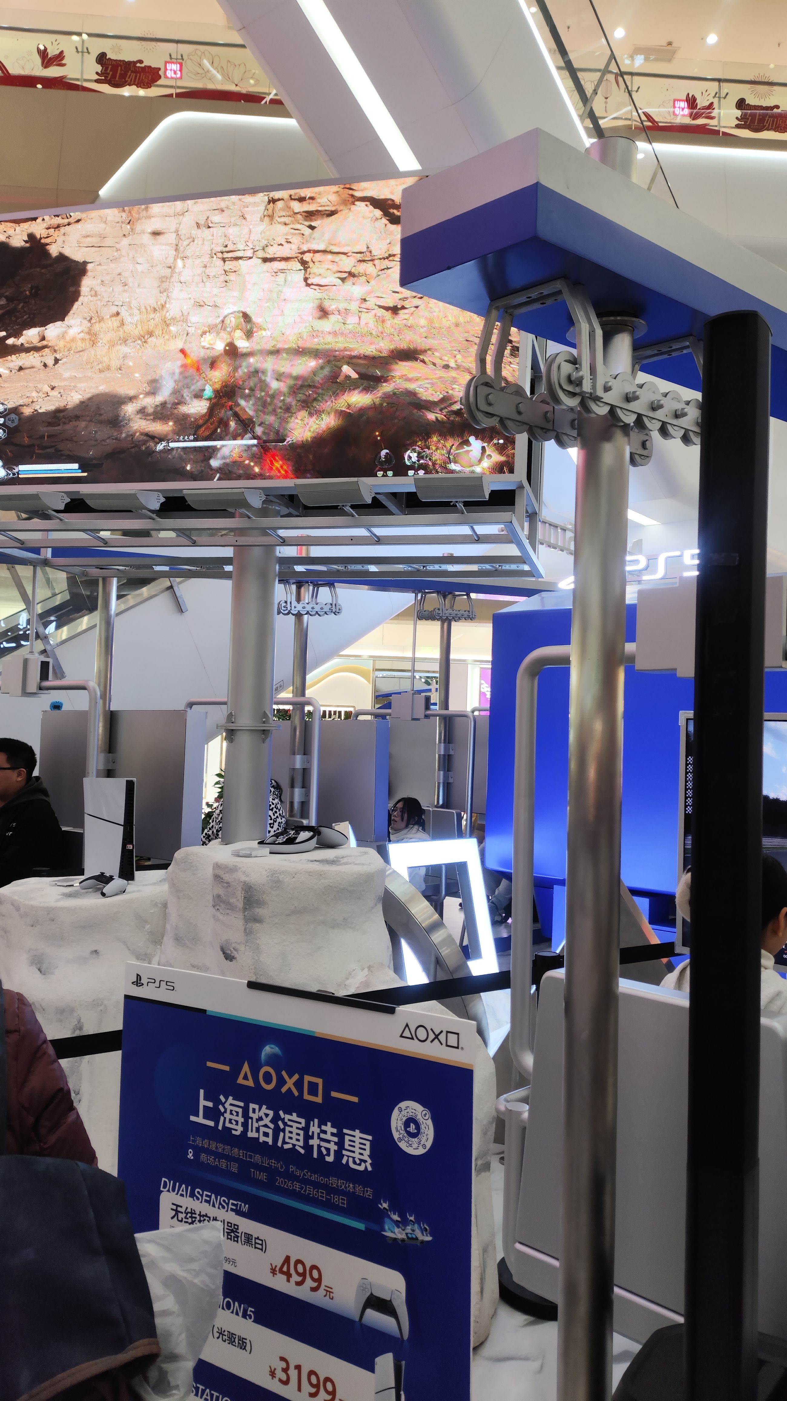 商圈路演快闪打boss挑战。不得不吐槽一下这个座位设计离电视太近了,明明用的ps5pro却感觉输入延迟很高(大概率电视问题),不让改技能树用完全不熟悉的戳棍只打过了第二关拿了个露营椅