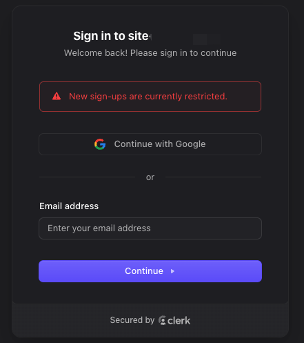 美中不足是这个站一度被某些用户通过临时邮箱薅的很难受。于是我在 clerk 后台开始通过乱点开关的方式寻找解决之道。当时只以为自己开启了一种更加严格的验证模式,实际上是误操作把注册给关了