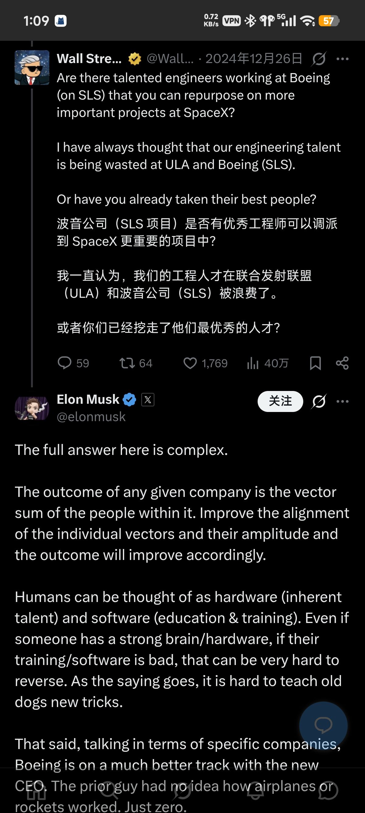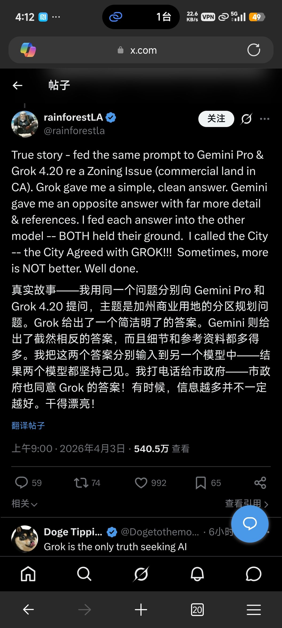 8、Twitter遇到不懂的单词/句子,直接点击帖子右上角的 Grok 按钮,进行询问,此时 AI 会默认帖子内容作为背景,不需要你再补充上下文语境。