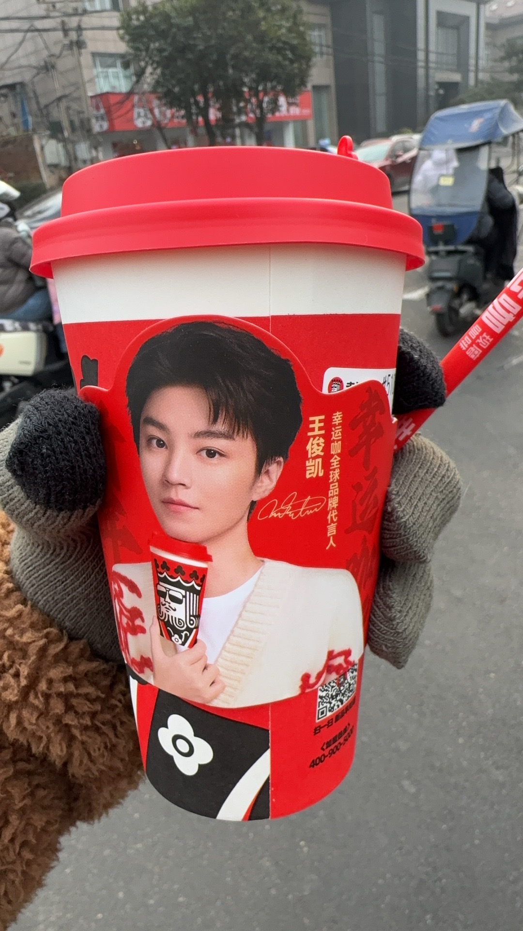 幸运咖为啥找wjk代言啊,整个店里只有杯套有代言人的元素🤣。