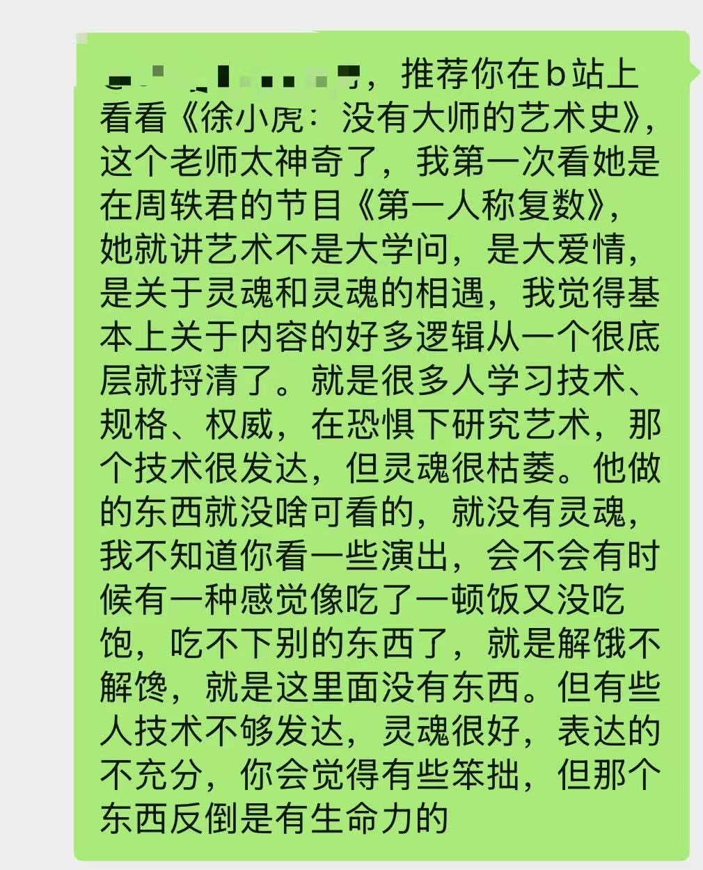 又,有弹幕因为大鹏这一期的表达时常停顿、磕磕绊绊,说没看出来做过主持人之类的话。我看这不是能力的退化,是大鹏选择了这个姿态。可能一方面是他对谈话的珍惜尊重,另一方面是他在做一个尝试,把“表达”重新交还给身体和感受,他好像在努力笨拙,也认为可以通过这个方法,去更靠近那个原本无需思考即可流经自己的东西。