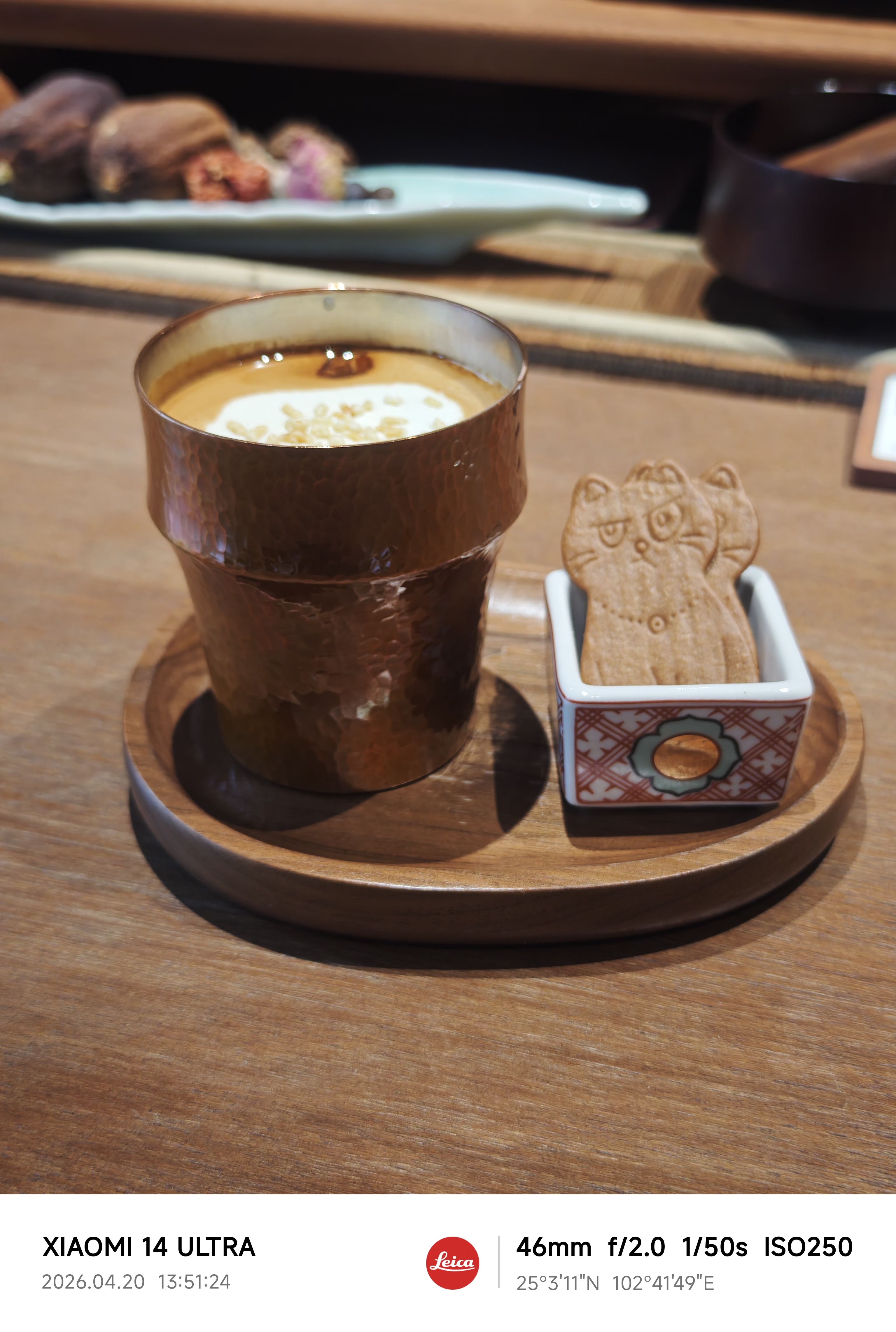 继续走,到了山野咖啡店 它不在街边,藏在拐角的二楼处,很不好找。点评上推荐的是他家的的玄米茶,味道很有意思,盛咖啡的杯子似乎是日本的铜器,有一股特殊的金属味道。玄米茶上的时候咖啡师对我讲,要大口喝。一口下去,我品尝到了好几种温度(不同温度的饮品分层了 好像有椰汁茶牛奶还有咖啡),两种口感(糙米脆脆的感觉还是咖啡顺滑的感觉),总而言之是很有意思的味道,推荐大家到昆明来品尝。它家的甜品乳扇巴斯克对我来说有一些甜,不过糕点上刚烤好的云南乳扇配上鲜甜的玫瑰花酱也很好吃。