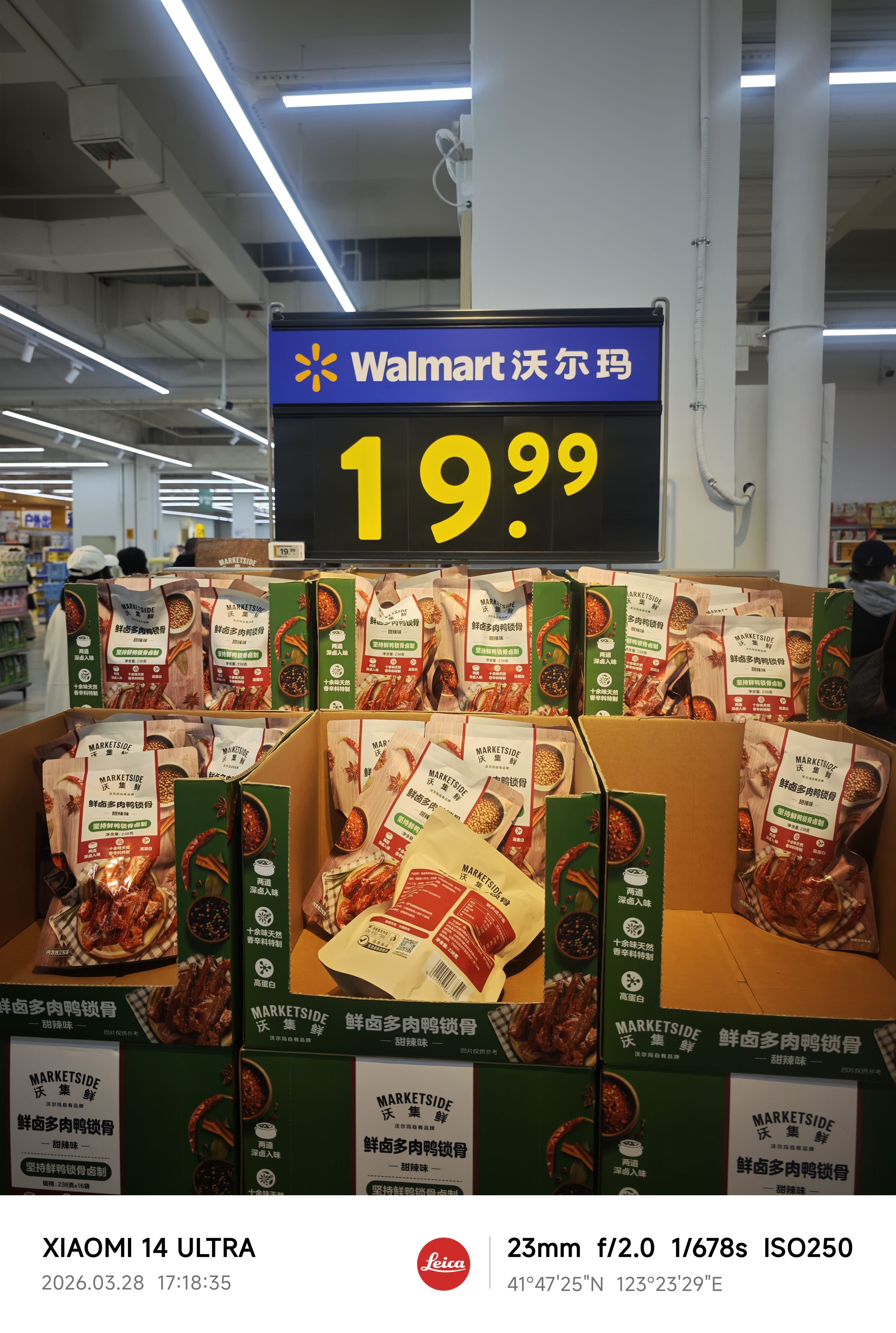 沃尔玛几乎全部是清一色的沃集鲜自有品牌商品 有意思的是它的生鲜区几乎没人动 这属实让我有点意外 它就属于小年轻或者情侣逛完街没啥事干去买点零食的那种超市 要我说它完全没必要做线下 全是预包装食品 没有生鲜 没有现制做线上就完了 不出所料 打开美团外卖 沃尔玛9999+