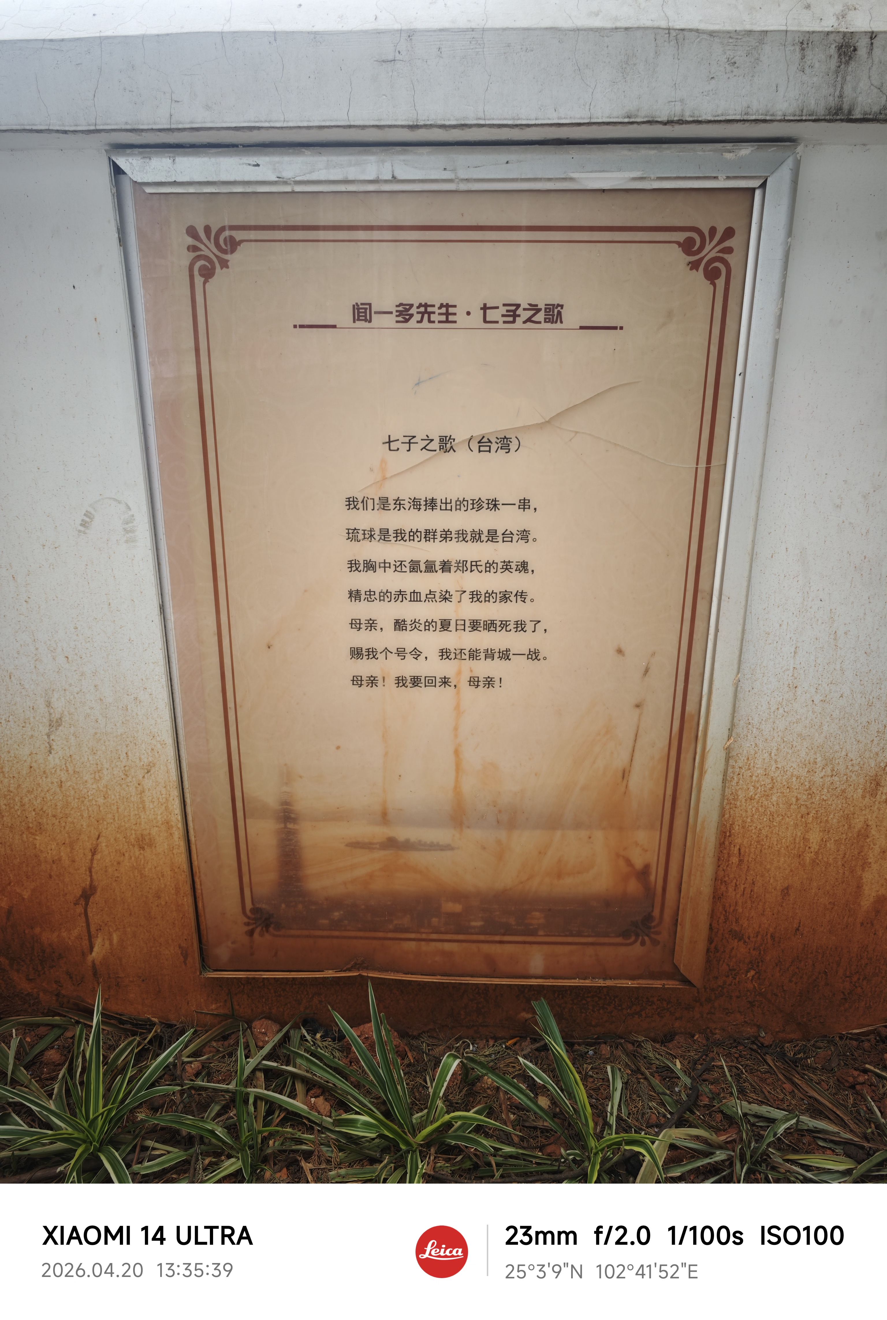 走过闻一多先生的故居,我看见墙上印着一首诗。诗句的末尾写道。