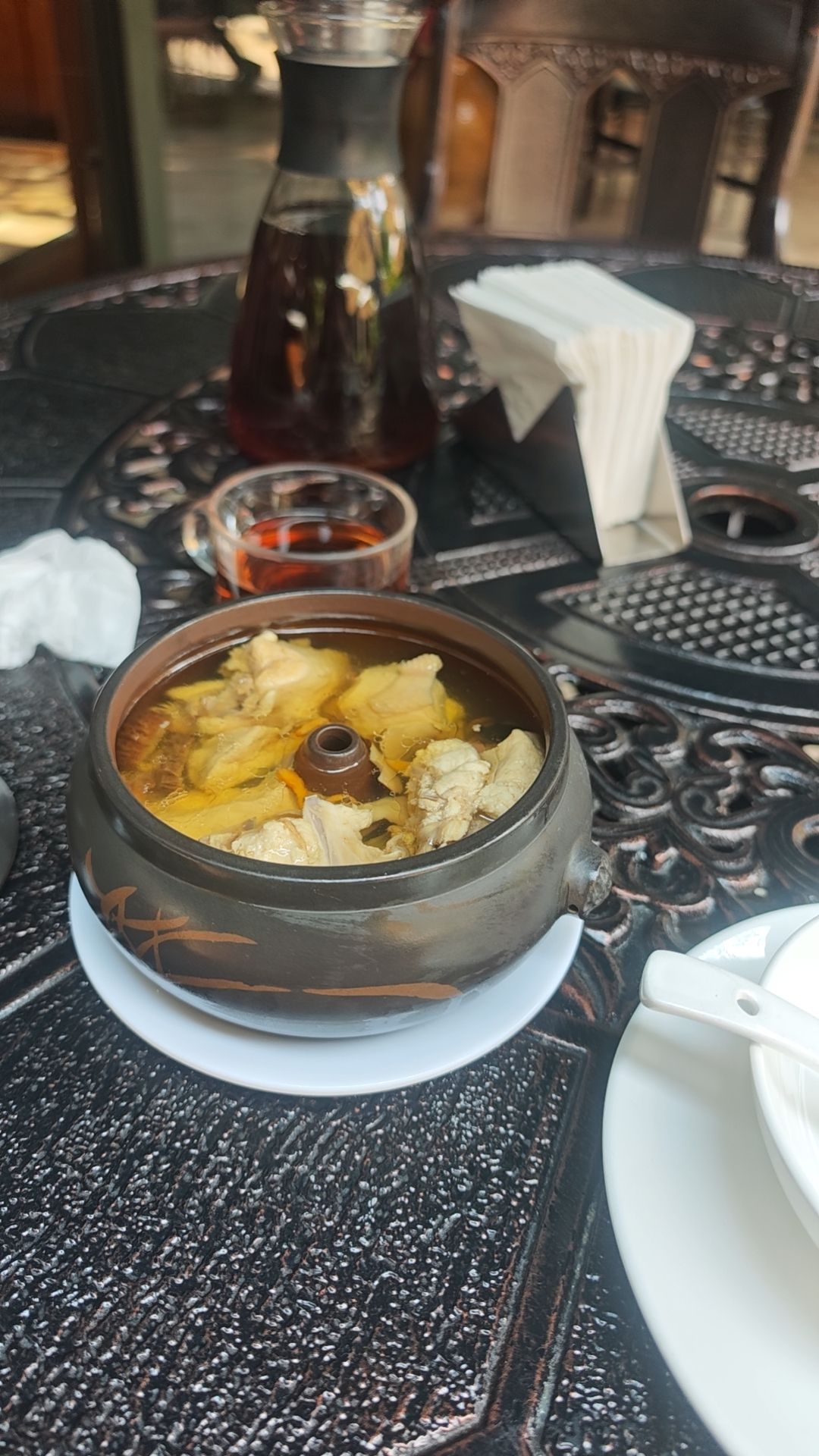 因为不想吃辣 所以选了点评上一家排名靠前的汽锅鸡餐厅,熙楼。选址时忽然发现,餐馆的旁边就是翠湖和云南陆军讲武堂。我决定先去吃饭,而后买一杯咖啡,在翠湖晒晒太阳。