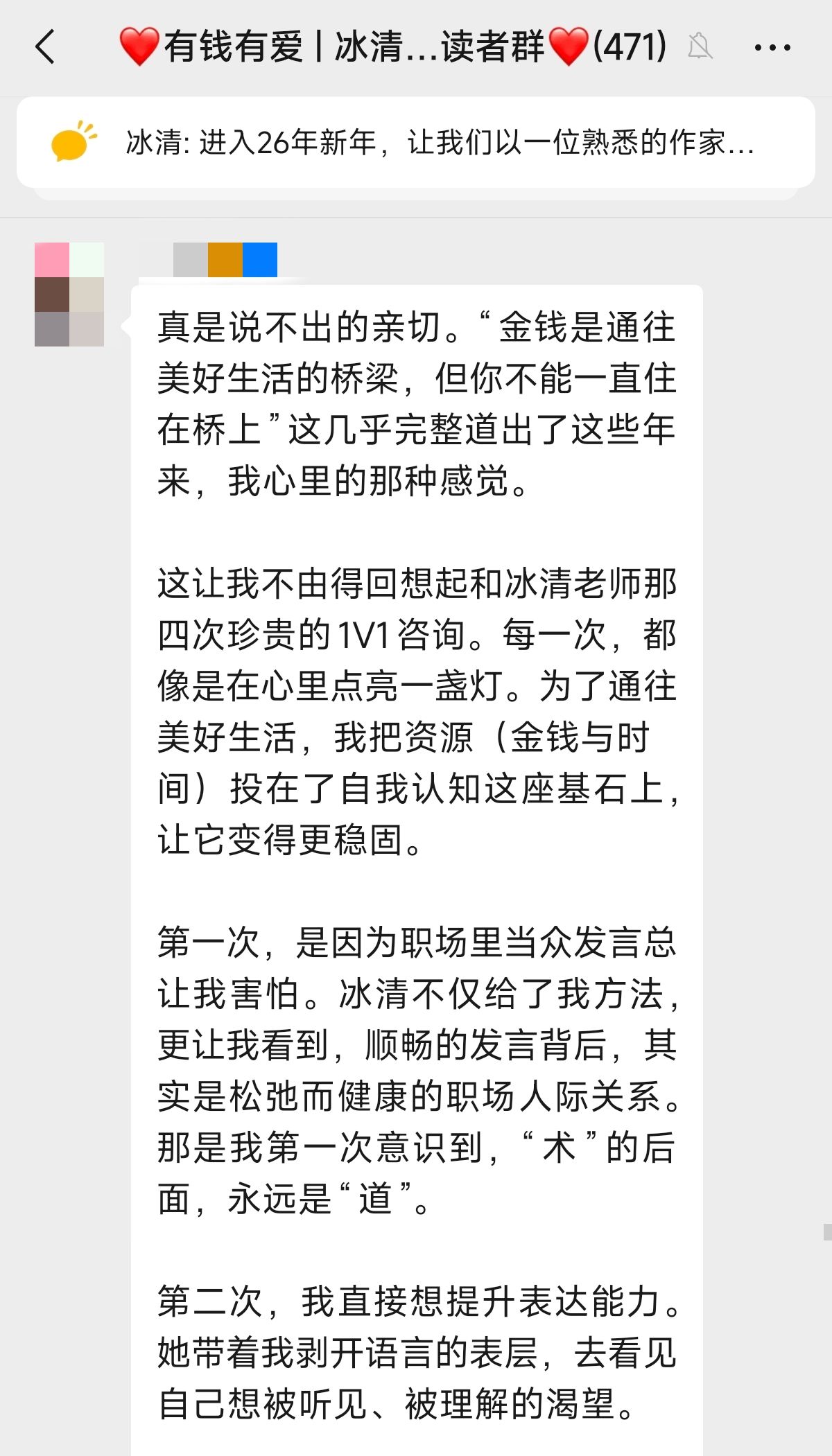 一直做专栏读者在个人成长领域的付费咨询和陪跑服务,近三年服务超百人,咨询总时长已超500小时。