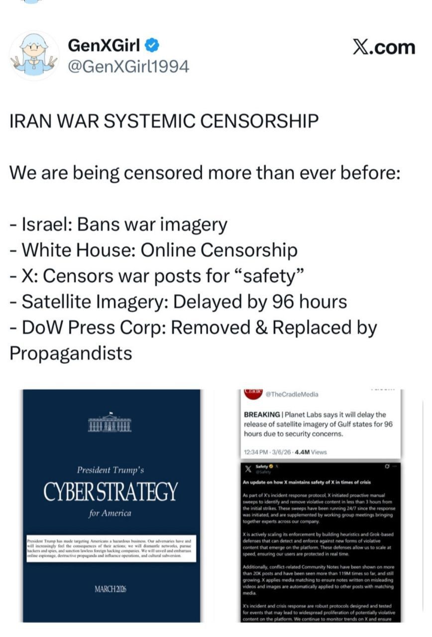 4.外媒社交媒体美国公民发布了白宫要求美国公民禁止向外发布泄露战争录像图片等,已经开始舆论信息控制,怕真相公布于众。