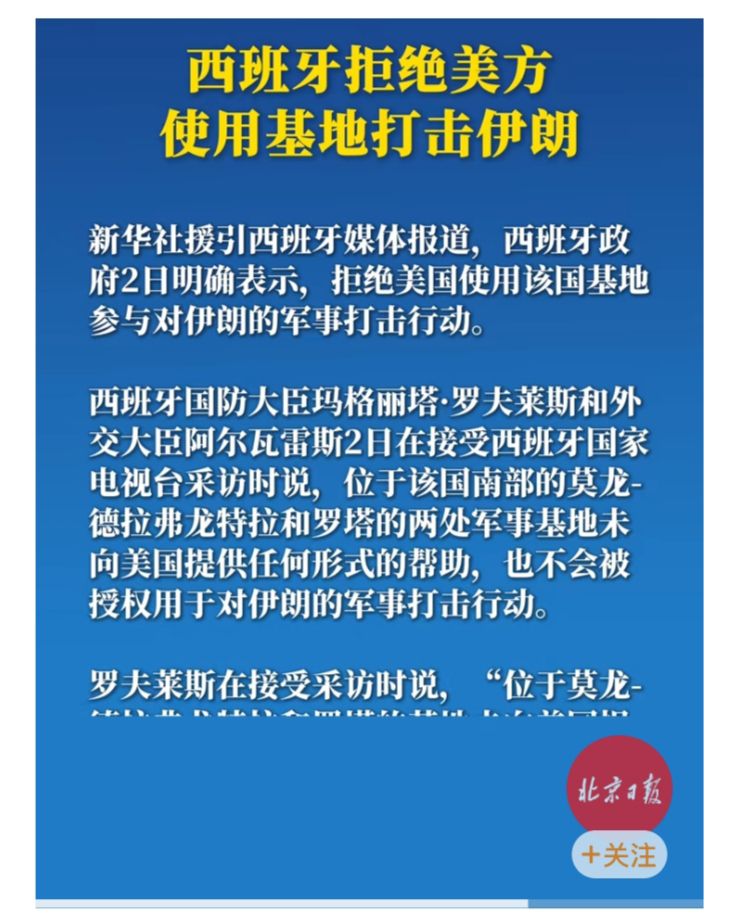 美国方面想空袭伊朗但是没有操作基地,而本来的欧洲同盟中西班牙和保加利亚已经拒绝美国用其境内基地攻击伊朗。