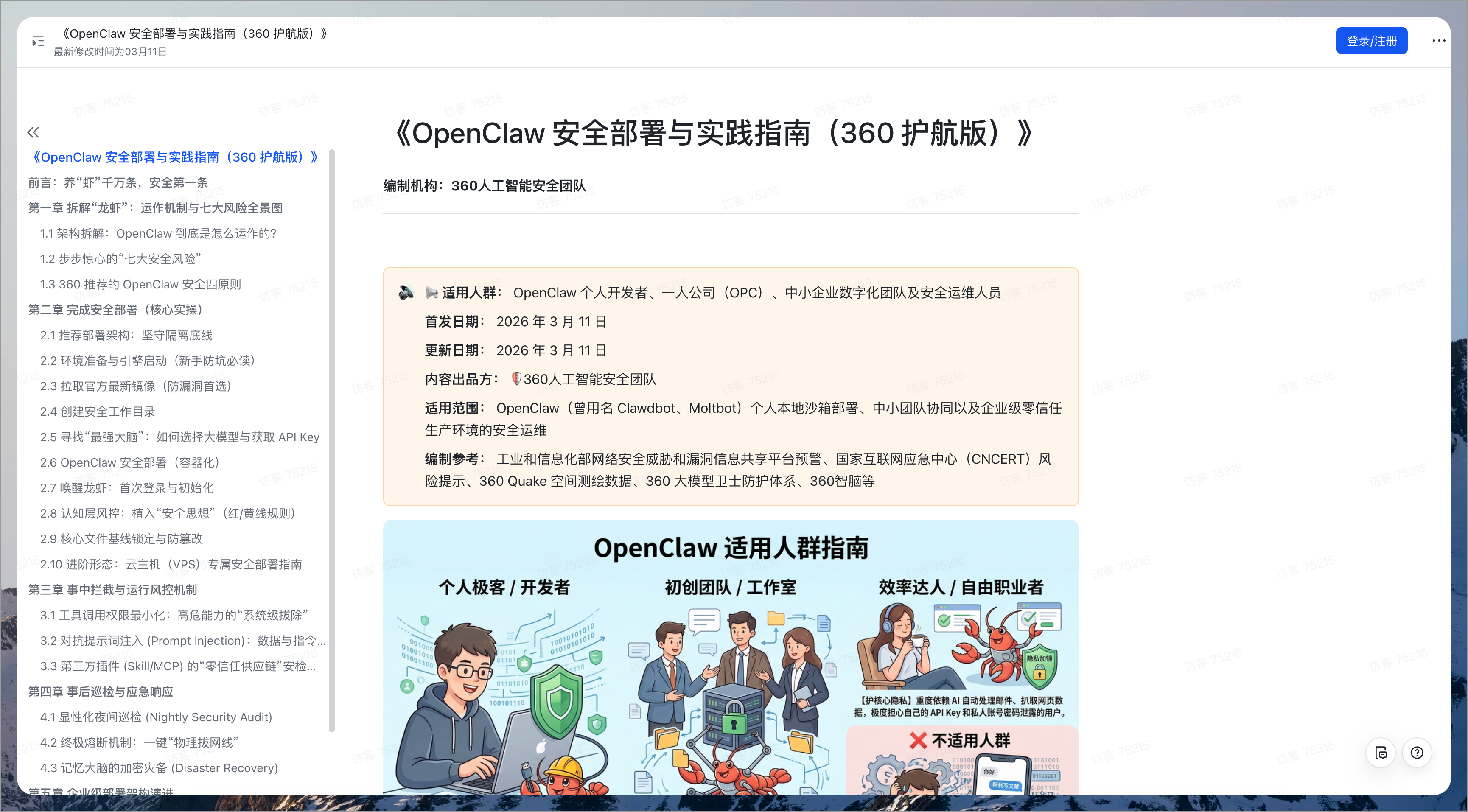 简单来说,这份指南是 360 专门为个人开发者和中小团队准备的。它详细解释了 OpenClaw 的运作逻辑,并指出了目前存在的七大安全风险。