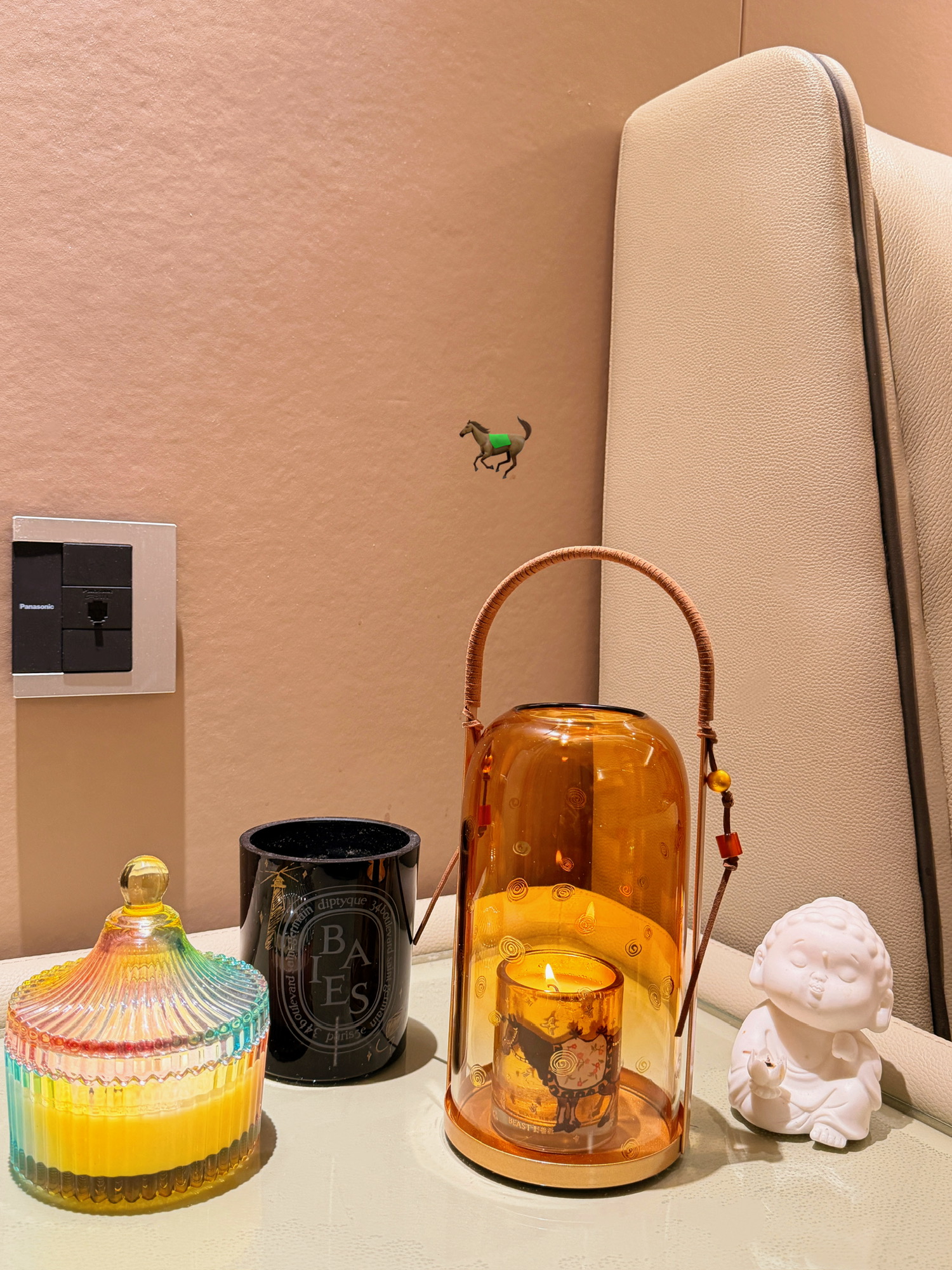 床头堆了大大小小蜡烛