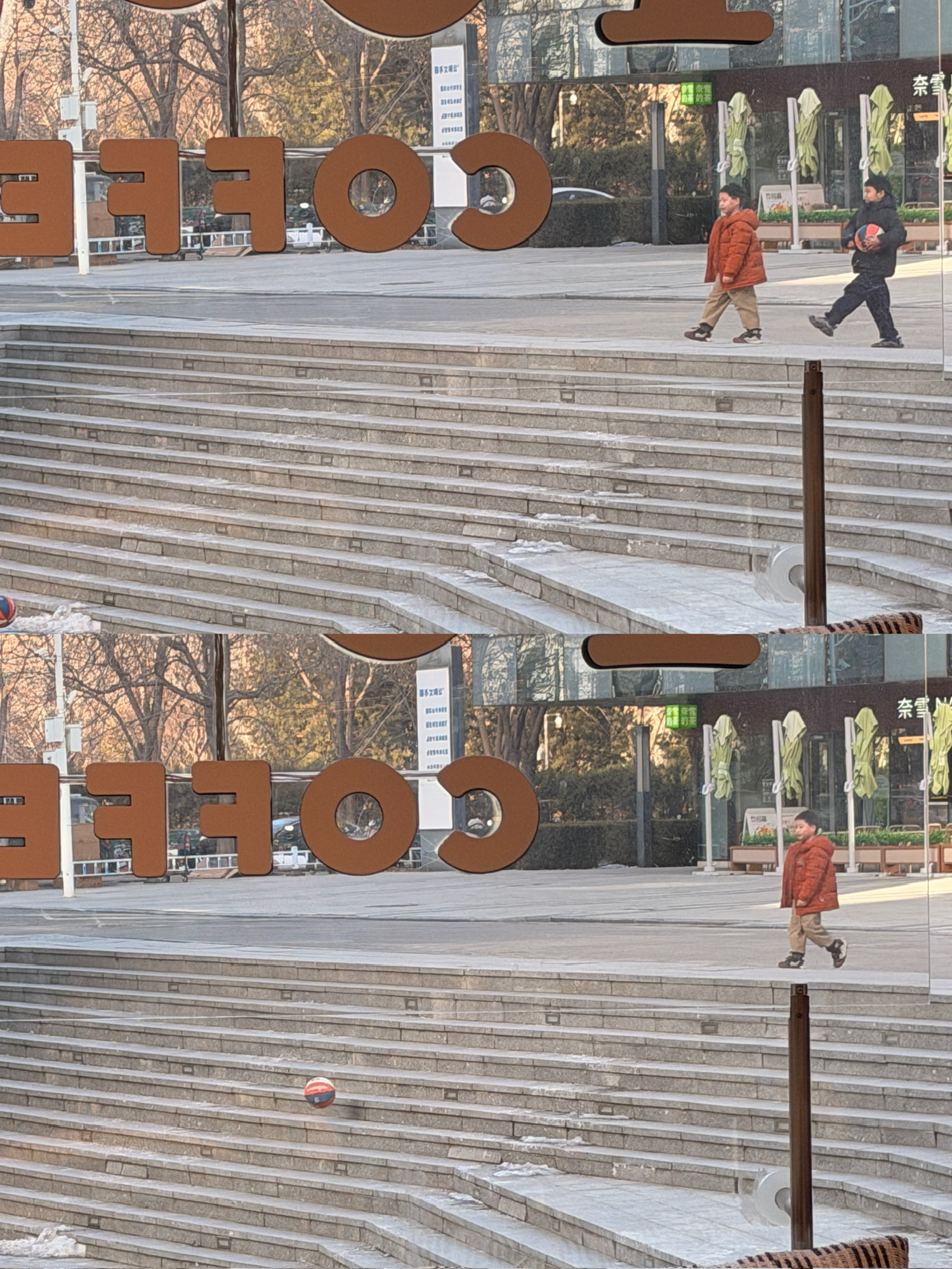 窗边这两孩抱着两颗球