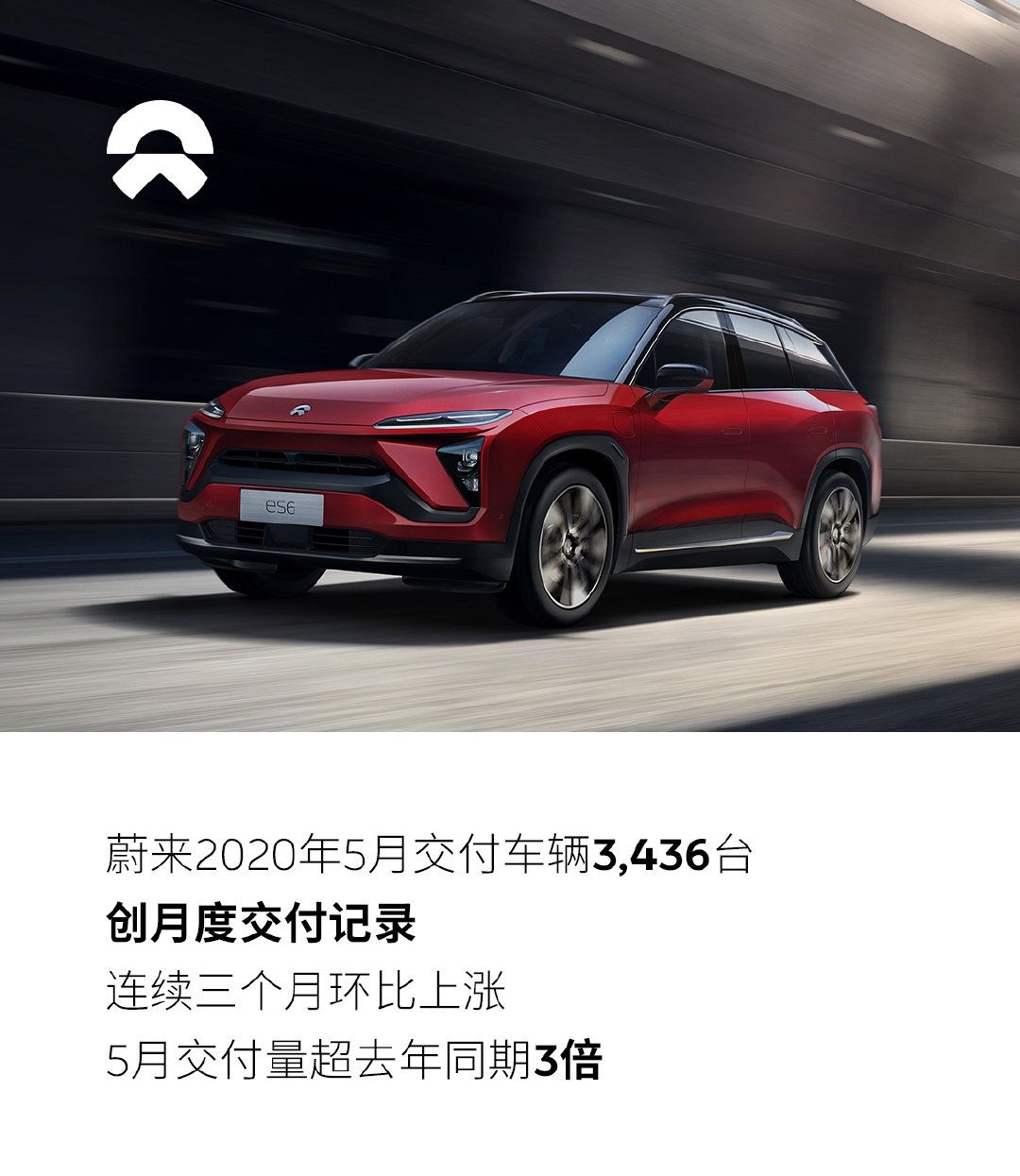 蔚来在2020年5月交付数达3436台,创月度交付纪录!