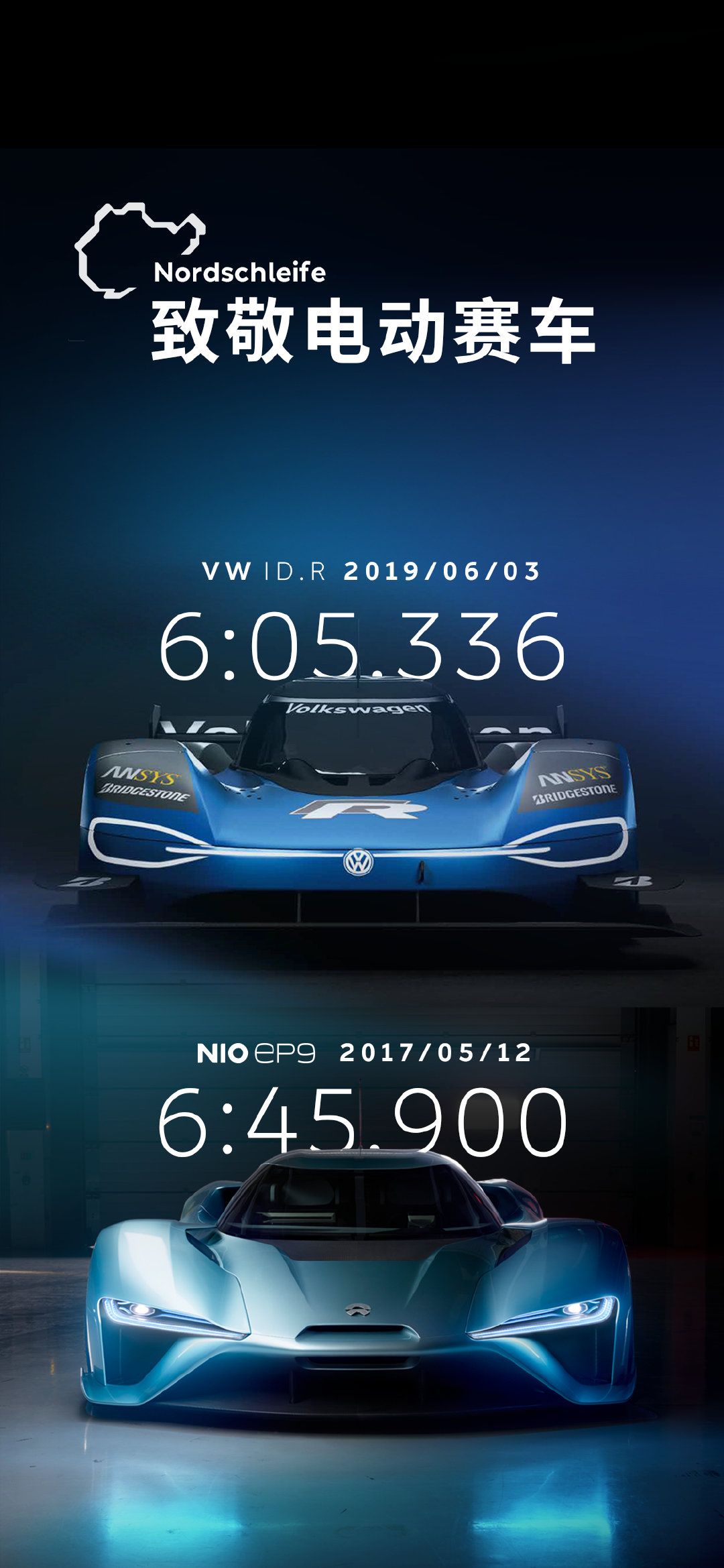 2017年5月12日,蔚来EP9以6分45秒900创造了纽北最快圈速纪录;