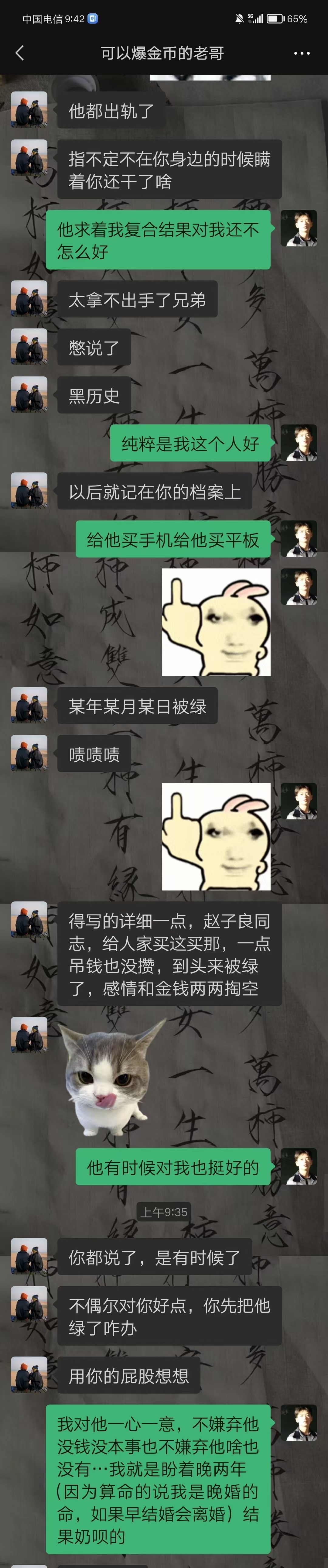 23年10月认识小孟到现在,不过是两年半的时间我对他由爱成恨,正因为爱他,所以两个人没办法结婚的时候才恨他,恨他无情,恨他宁愿和另一个女的再接触几年也不愿意等我两年,恨他答应我的事全都反悔,恨他为什么在伤害我之后仍然可以第二天接着与其他女生接触,恨他的自私。