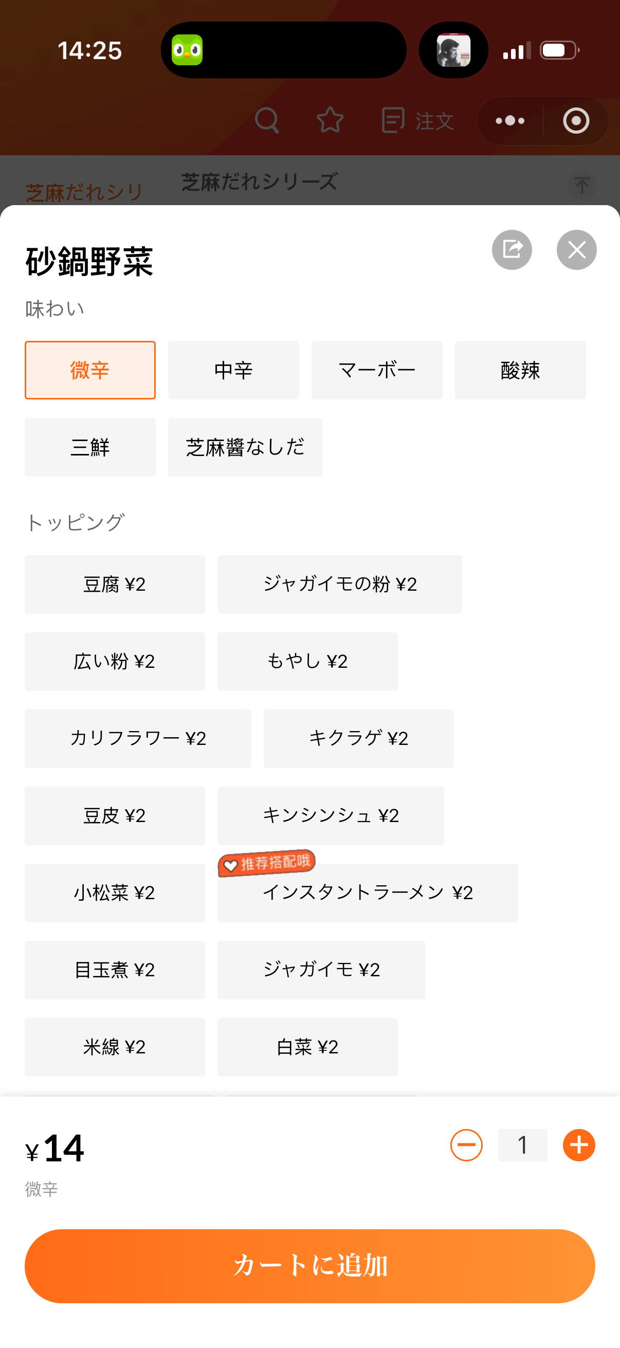 当手机系统语言设置为日语后,打开小程序点菜……