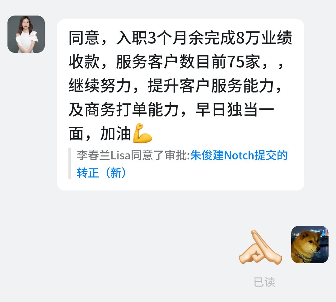 今天收到转正通知——