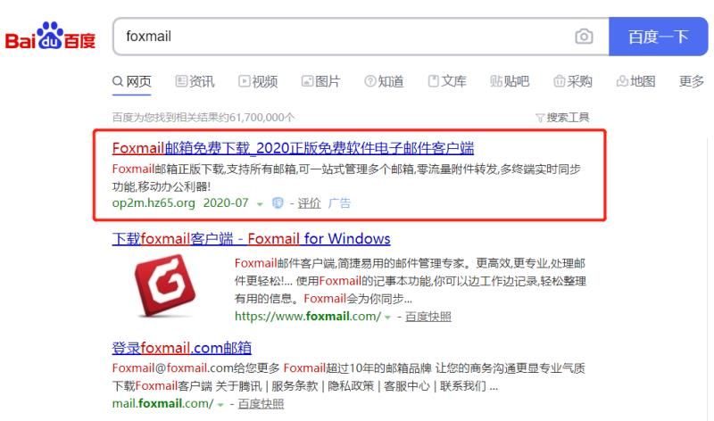 以前听说度娘改邪归正了,有官网的优先放官网,于是想下载个FOXMail,没想太多点了第一个。
