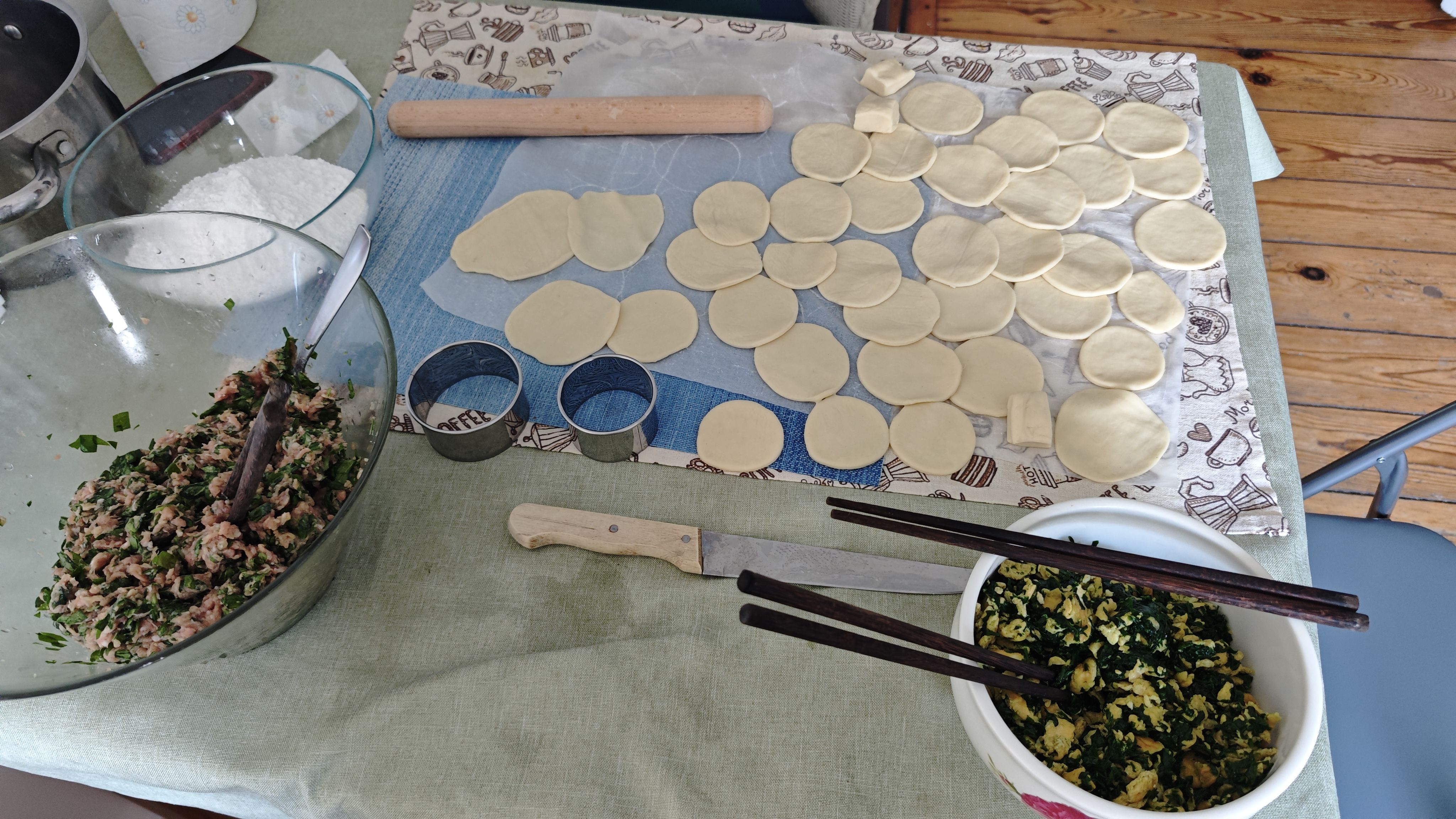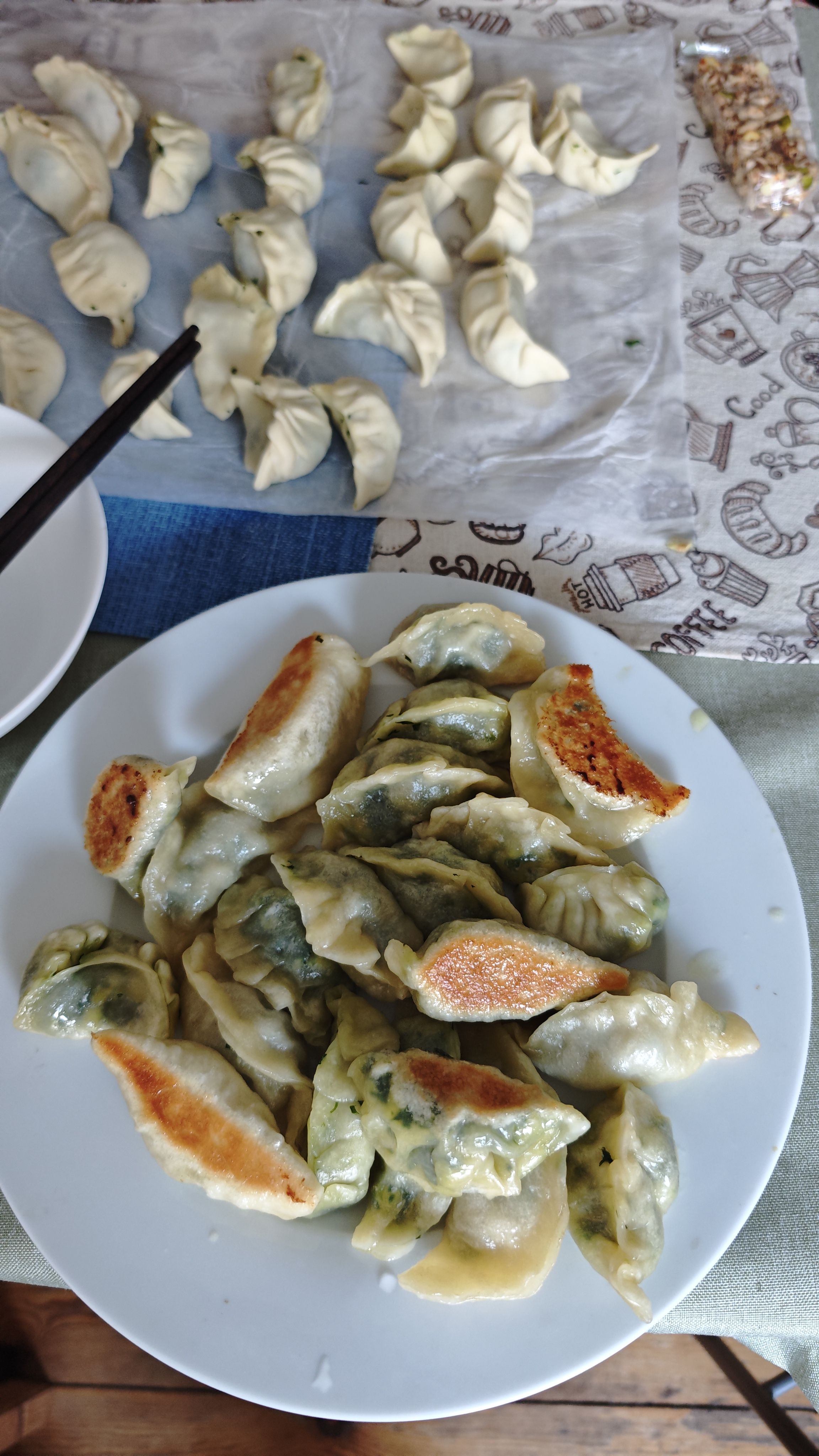 回来朋友家做了韭菜馅儿锅贴