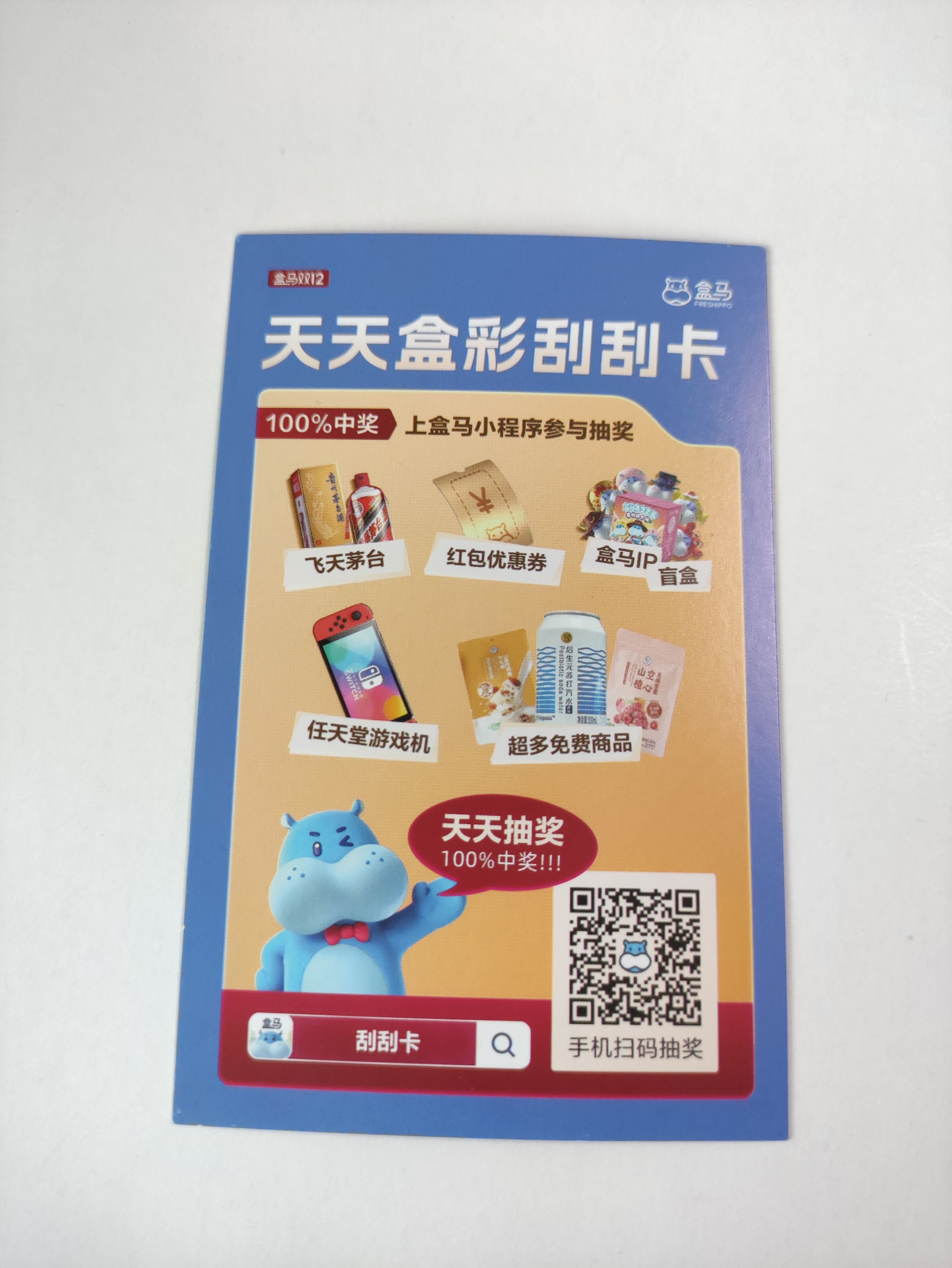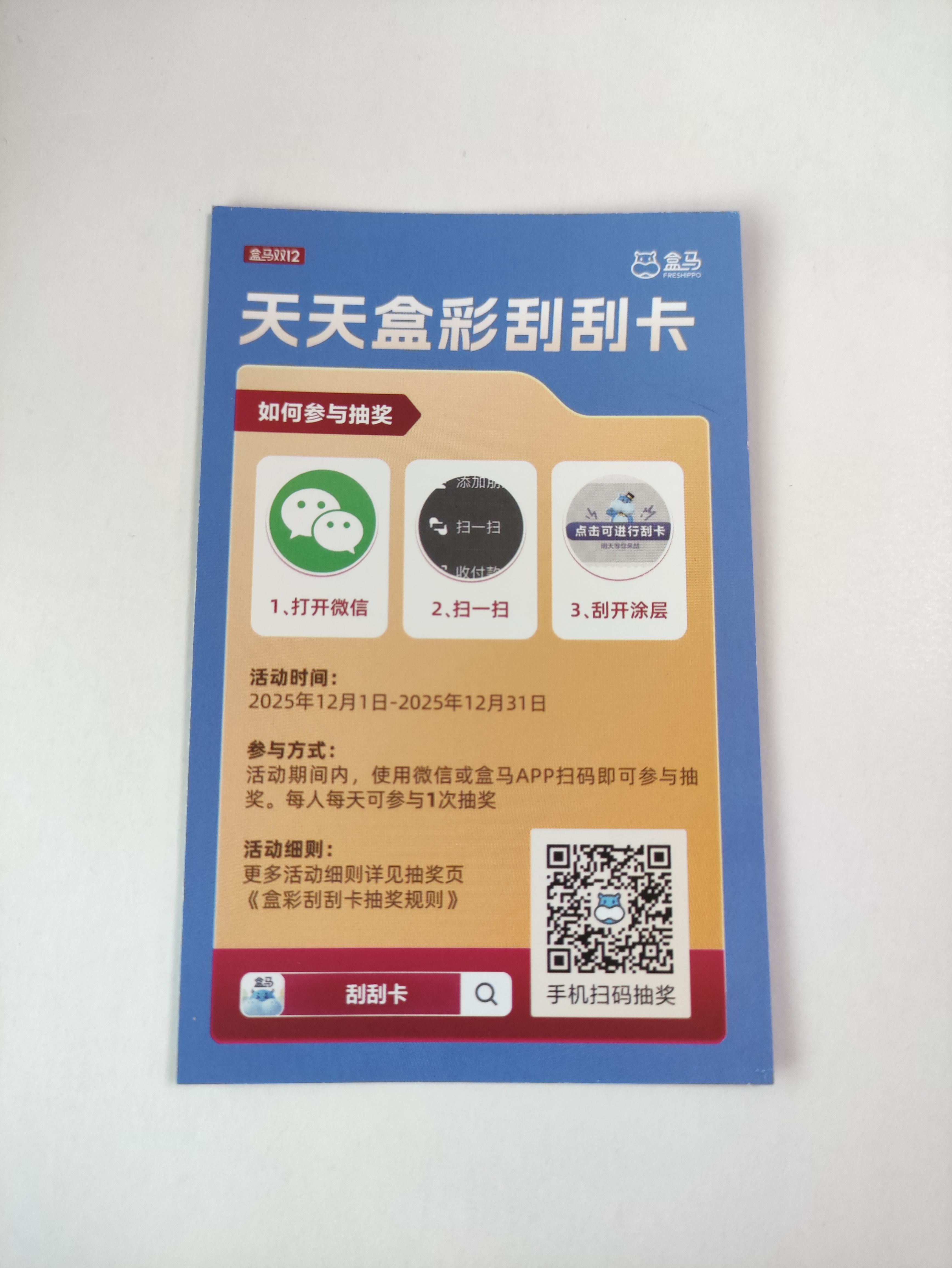 盒马这个月的刮刮卡活动,每人每天一次