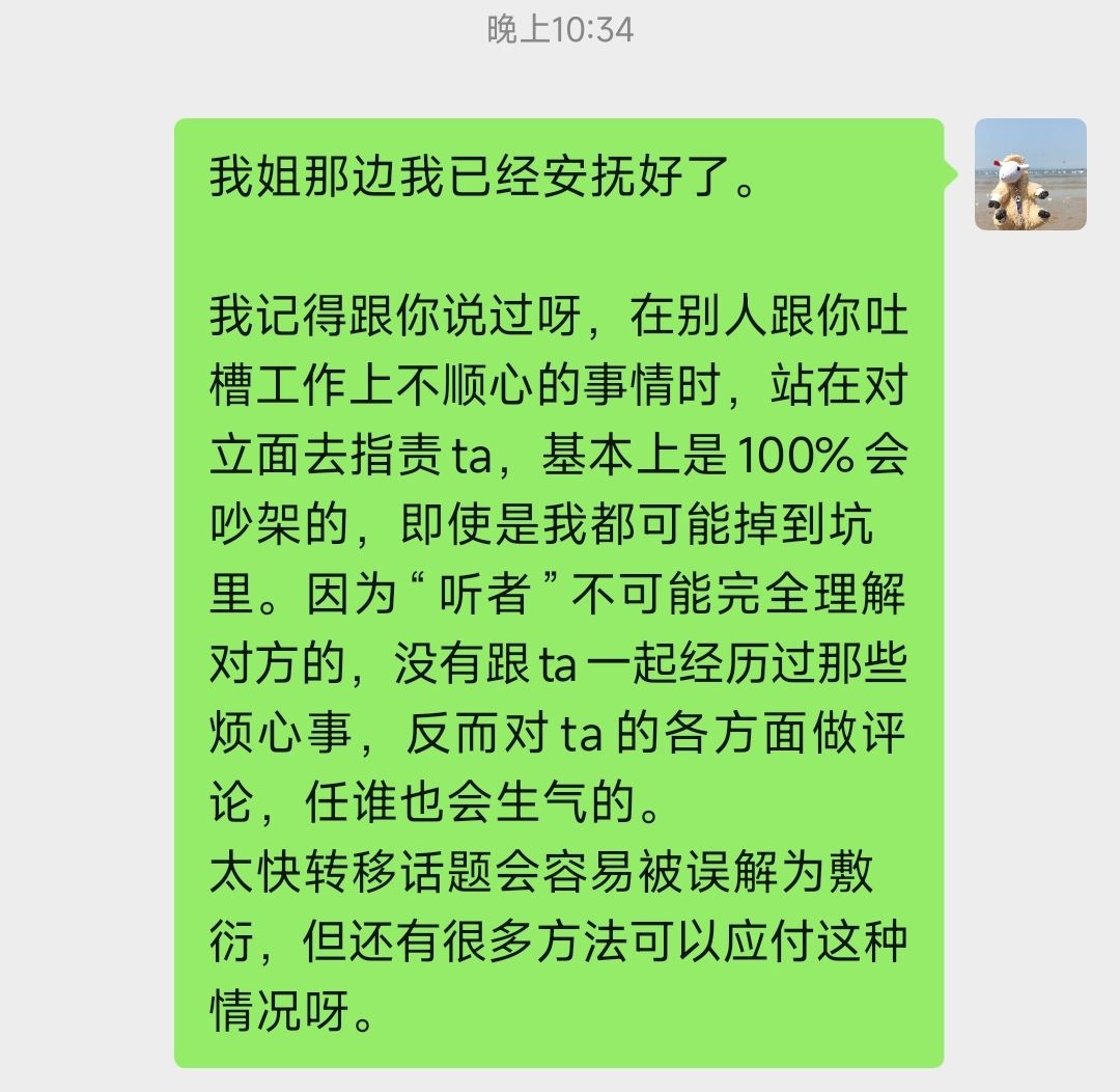 视频打过去,直接沉默半分钟,我就开始说我自己的事情。我讲完后她也平静下来了,开口说自己和男朋友的争吵的原因。