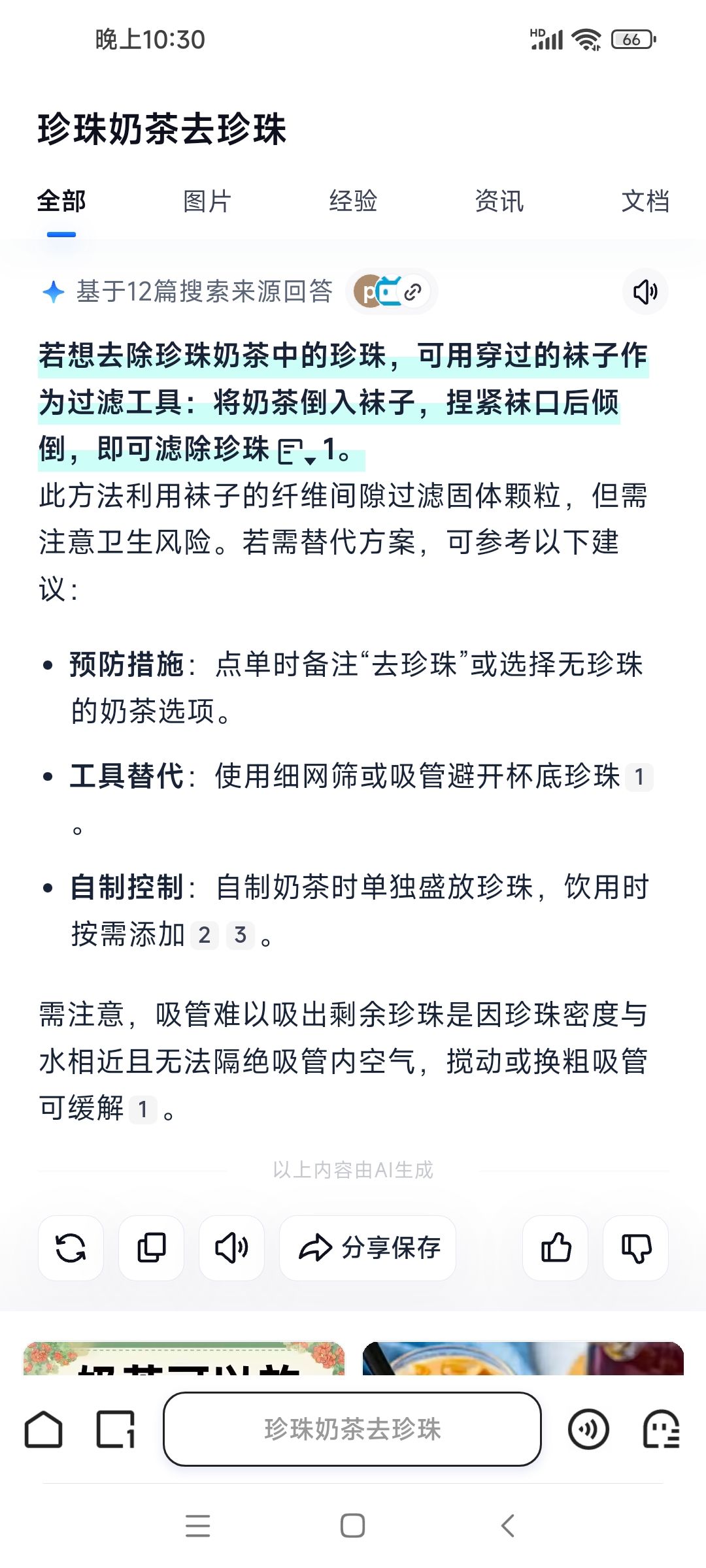 夸克这个回答什么鬼?用穿过的袜子作为过滤工具?