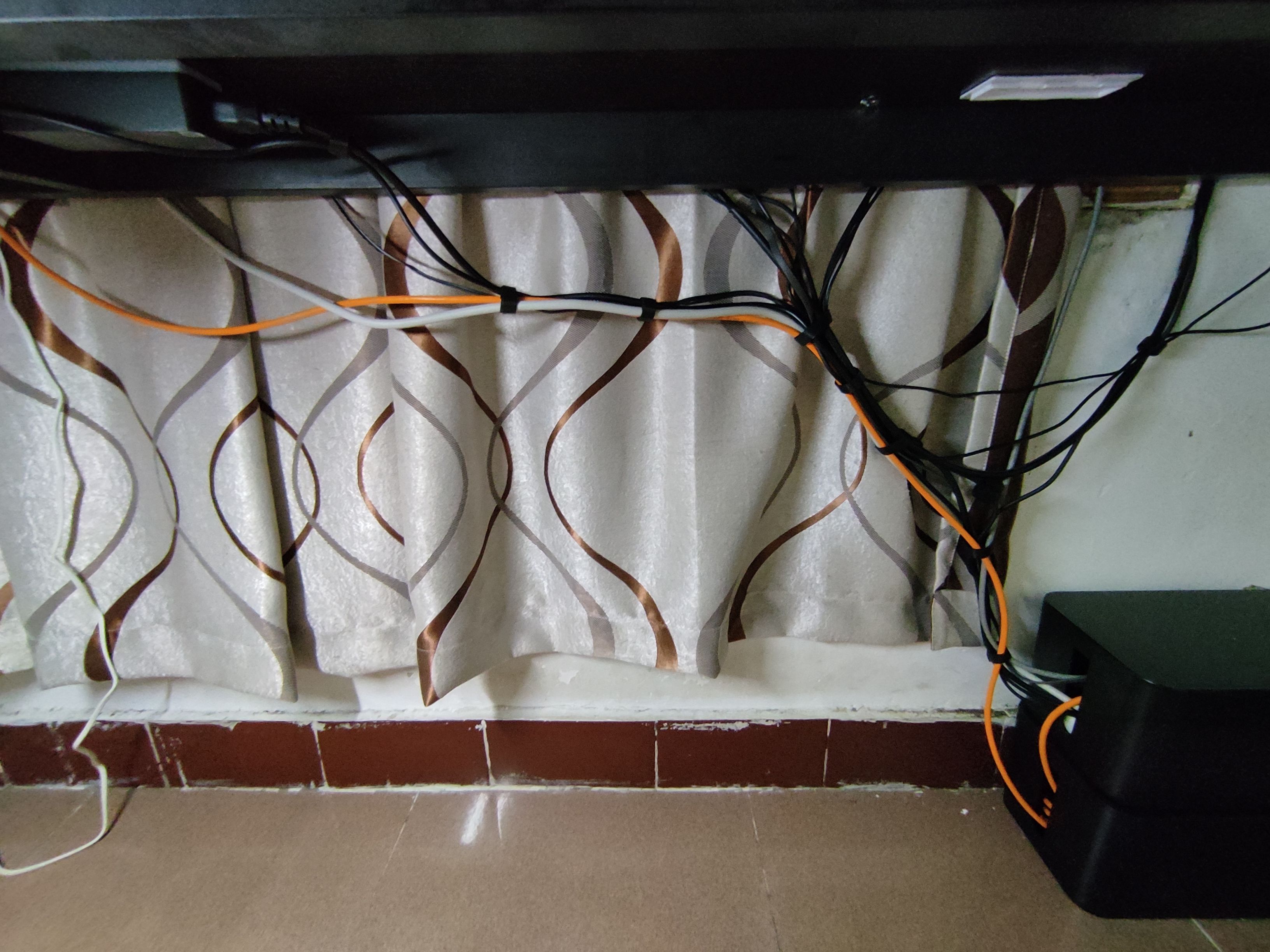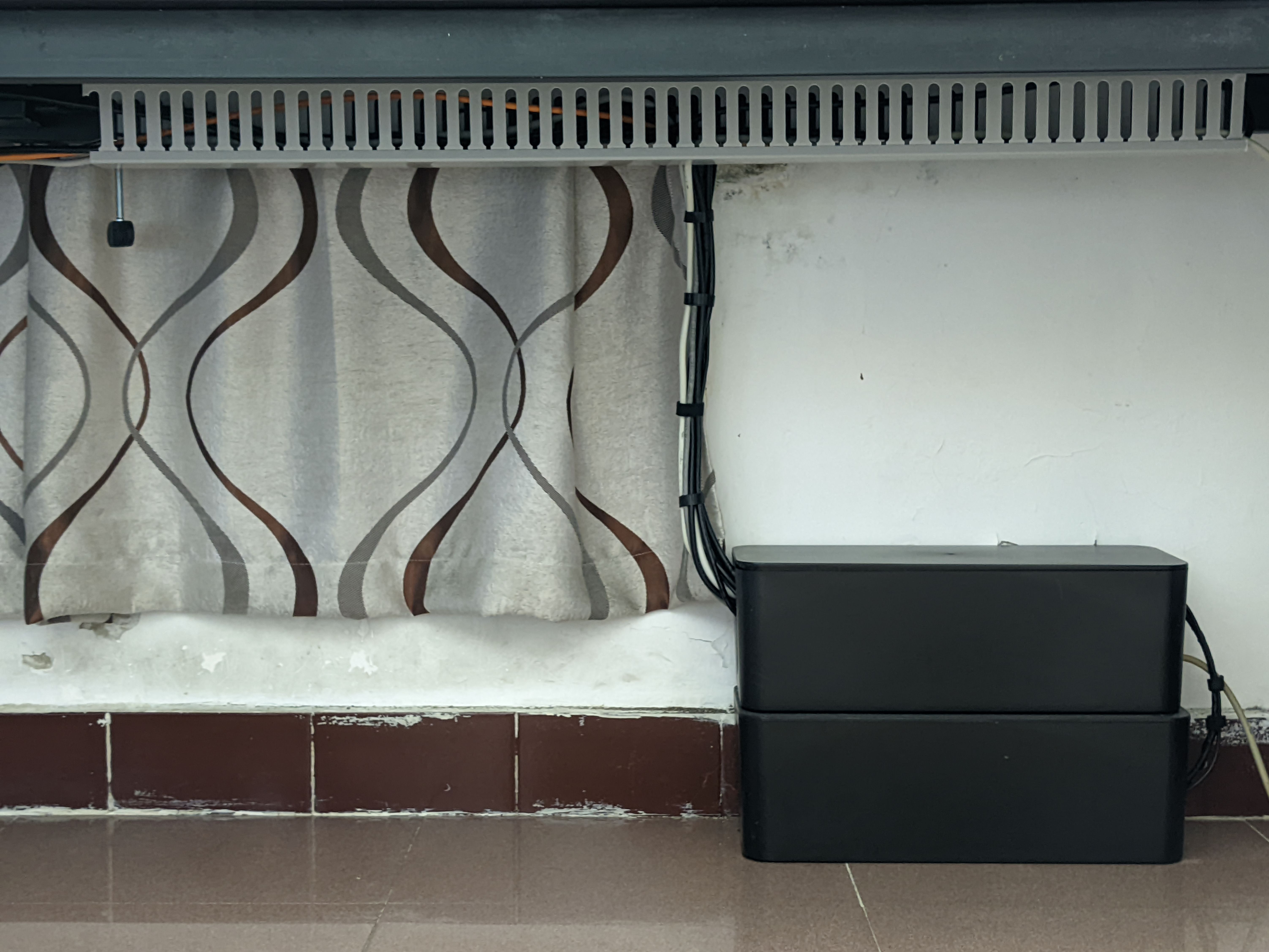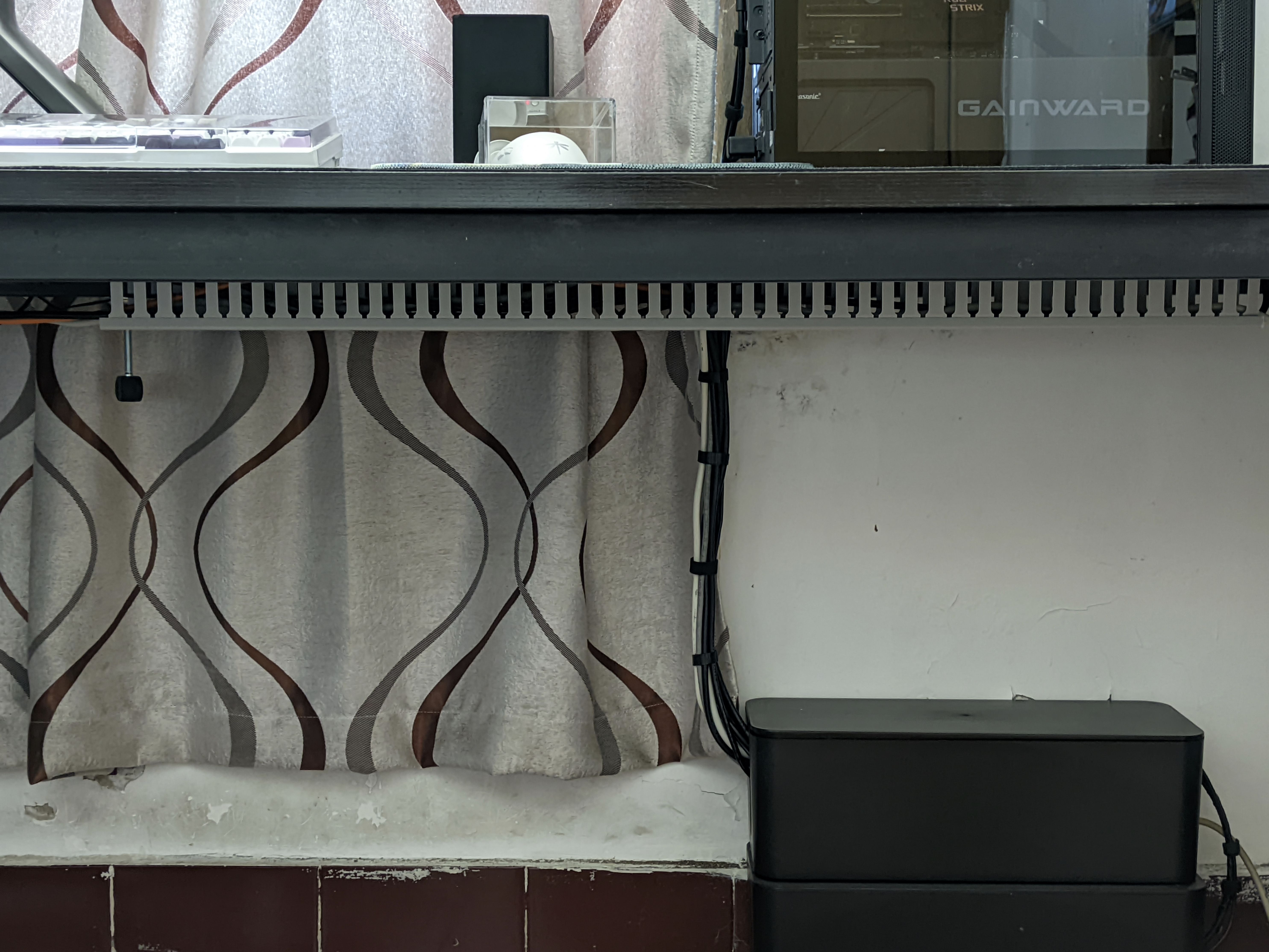 pvc理线槽,因为插排收纳盒在底下,上下走线七七八八的,即使用魔术贴扎了也是很乱,用了线槽后就好多了