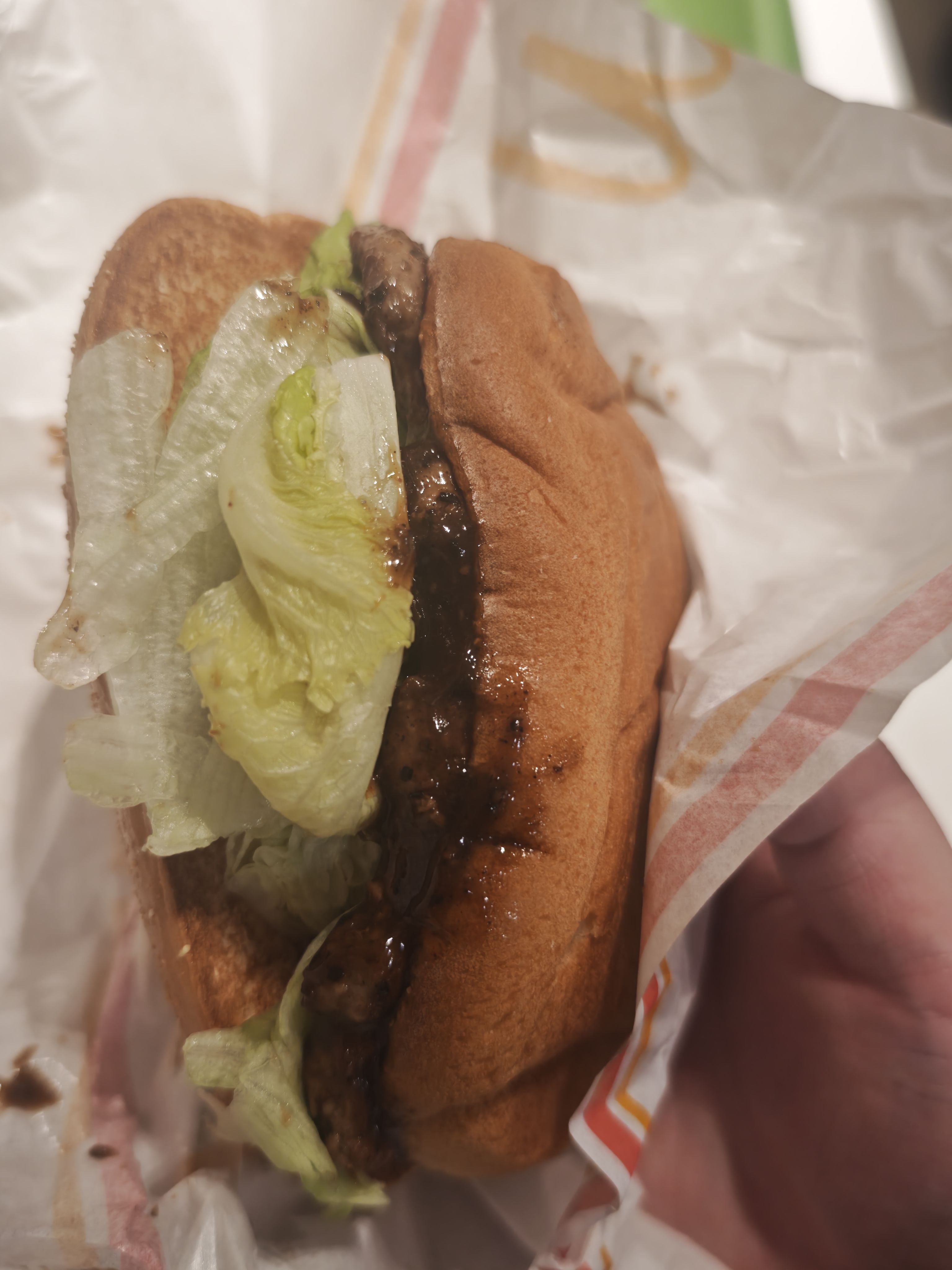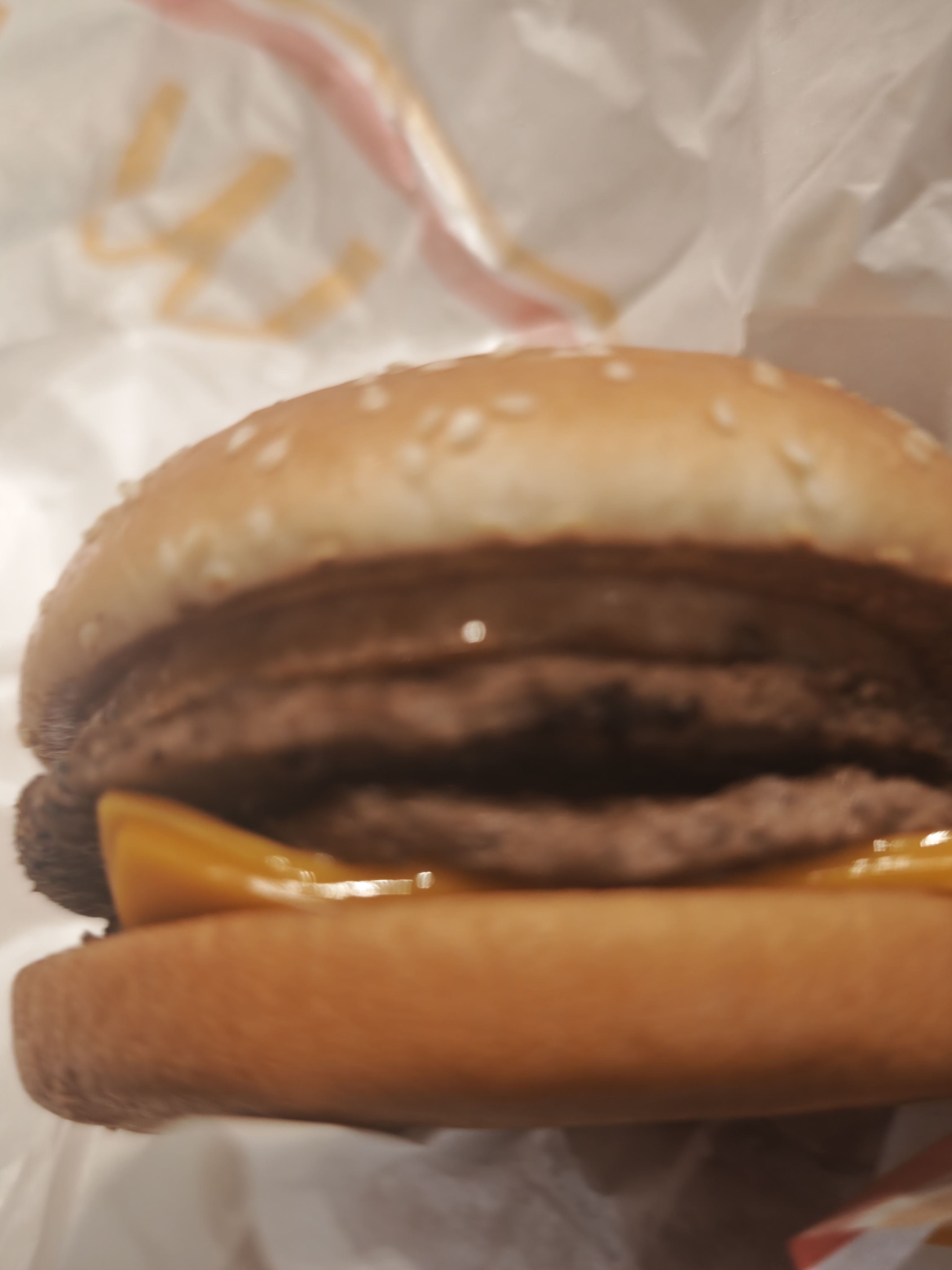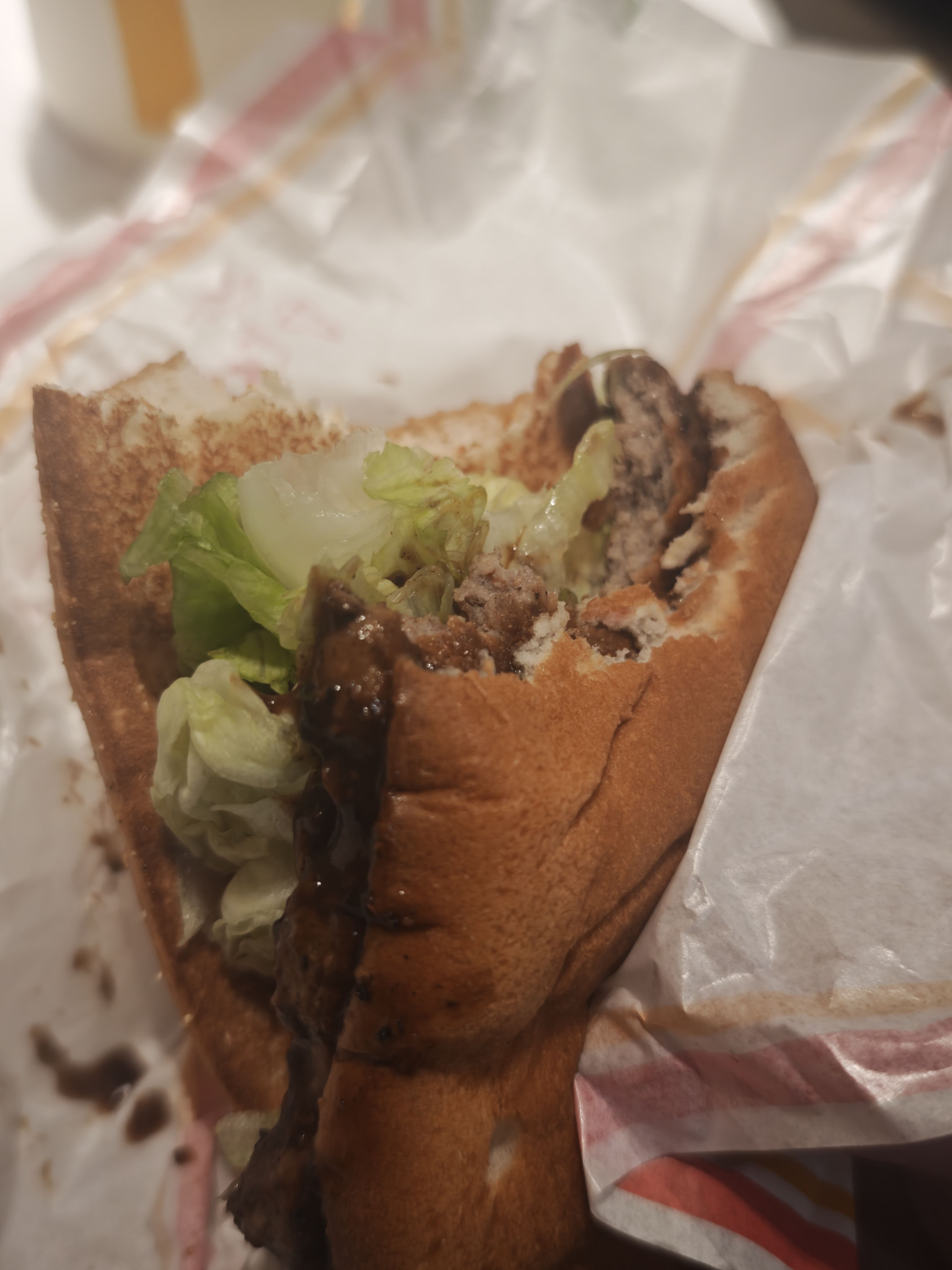 那个三层堡,不如点个培根芝士双牛,自己再加块午餐肉。那片肉鸡肉含量太多了