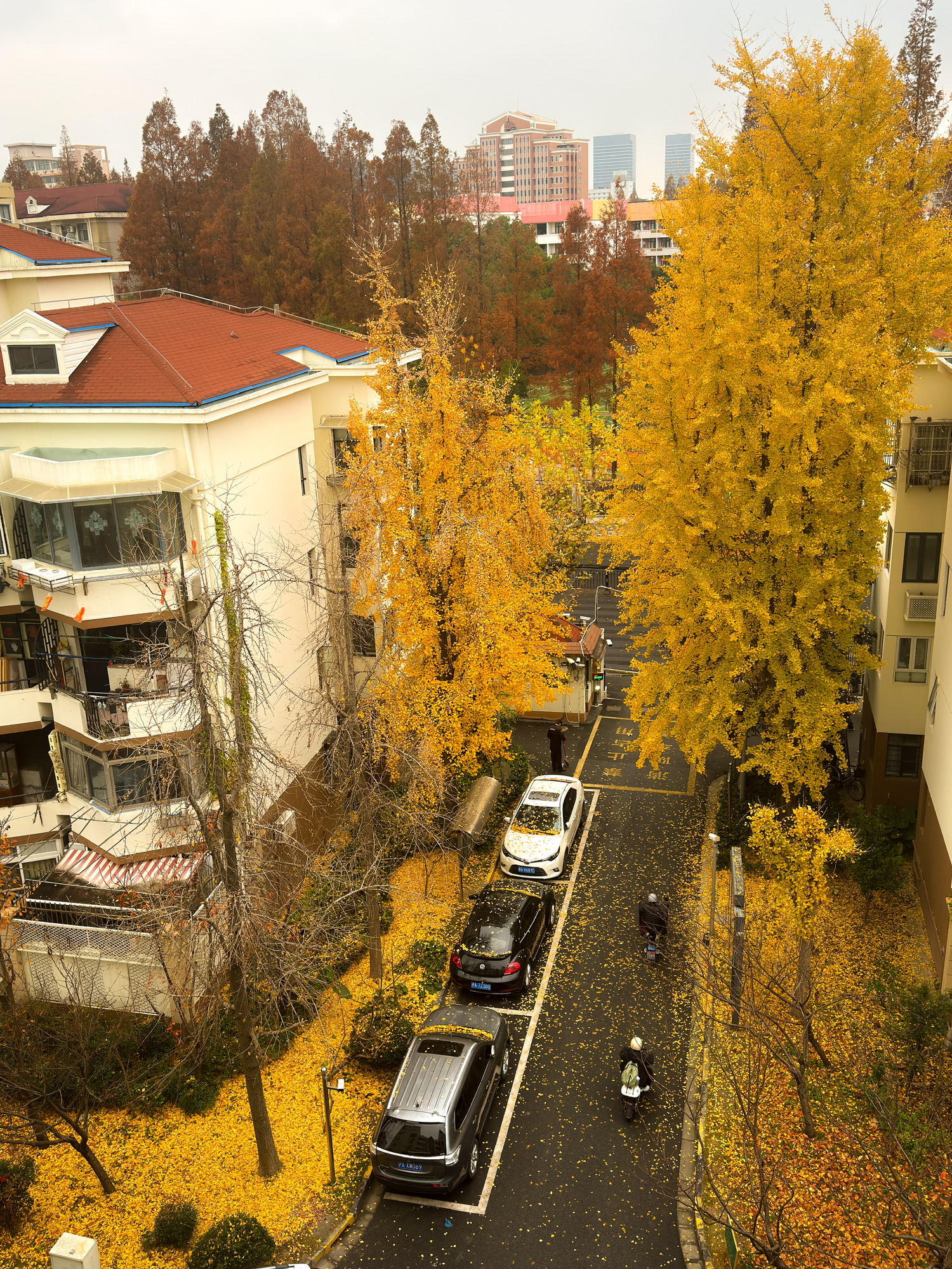 看雨后银杏落了一地。才恍然想起当初为何宁愿爬六楼也要选择这里