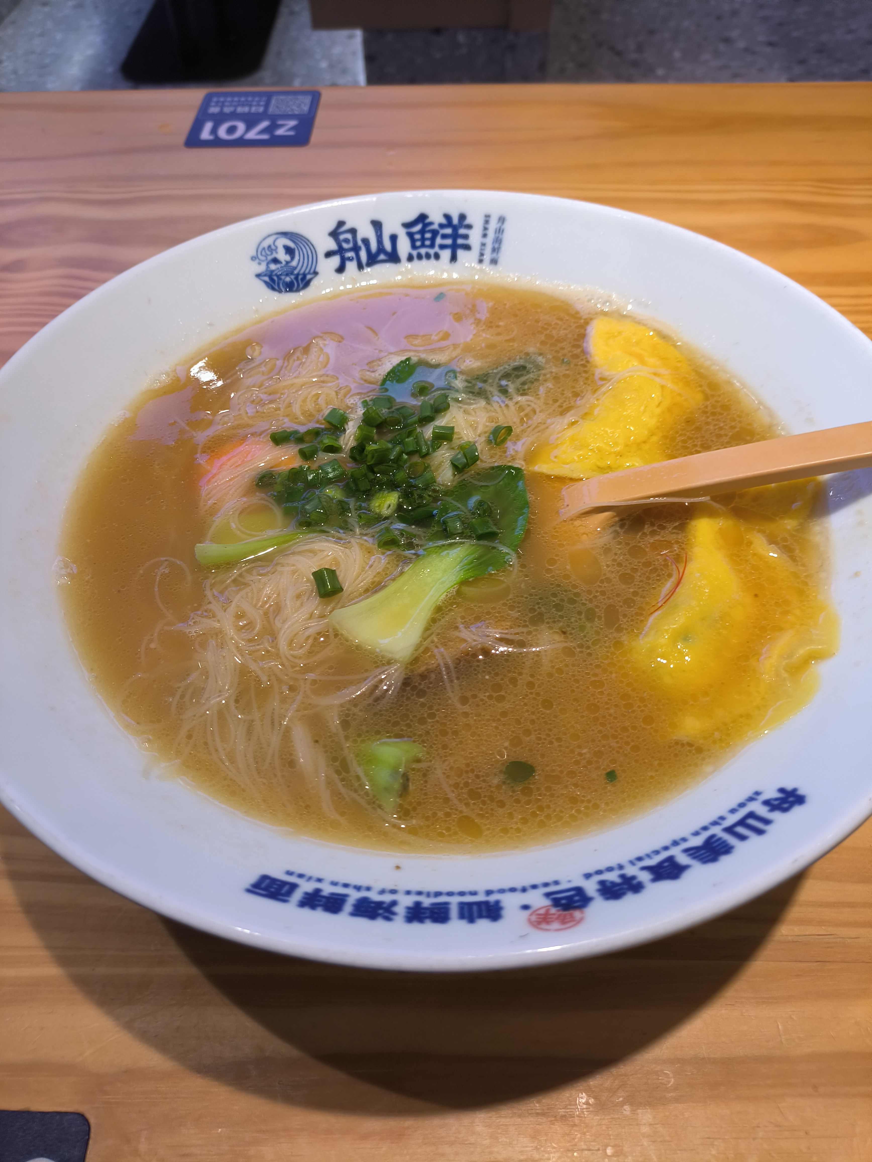舟山海鲜面,和台州一样用的米面,出品没展示图好看,味道倒还不错。带鱼是炸的带鱼,确实没那么有鲜味,但却有一股甜味,还挺意外。