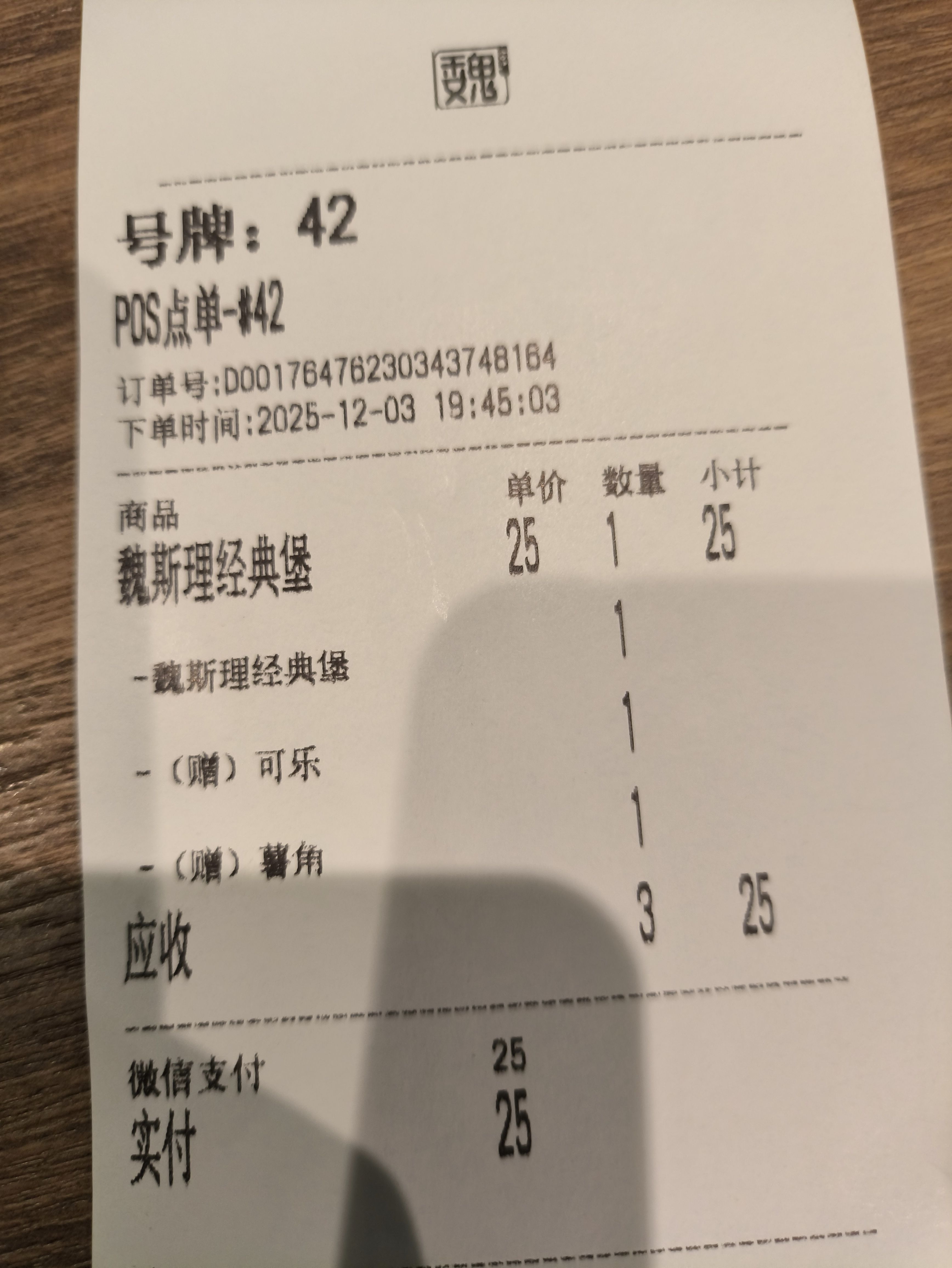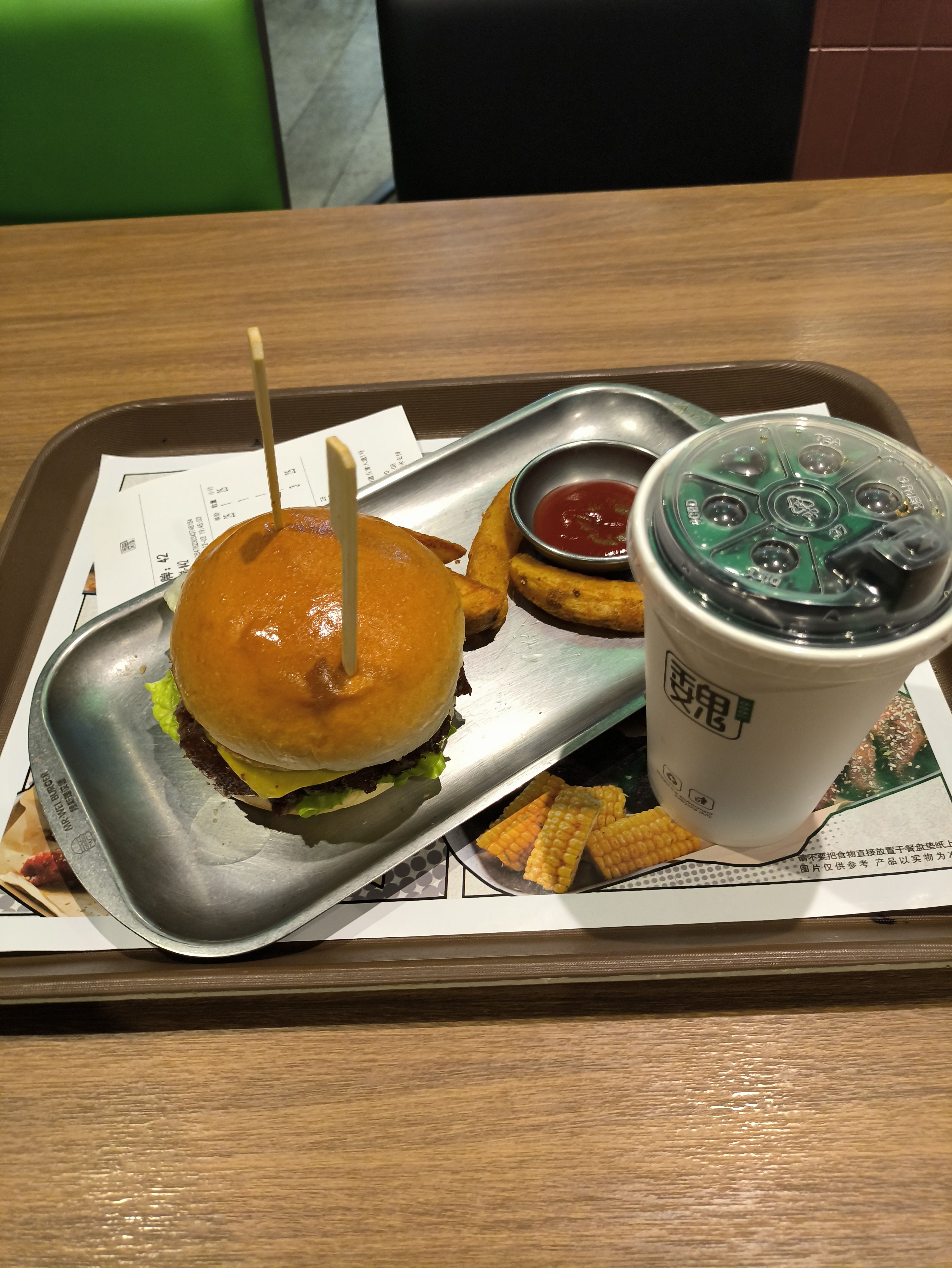 25元的现做汉堡,还又送可乐又送薯角。