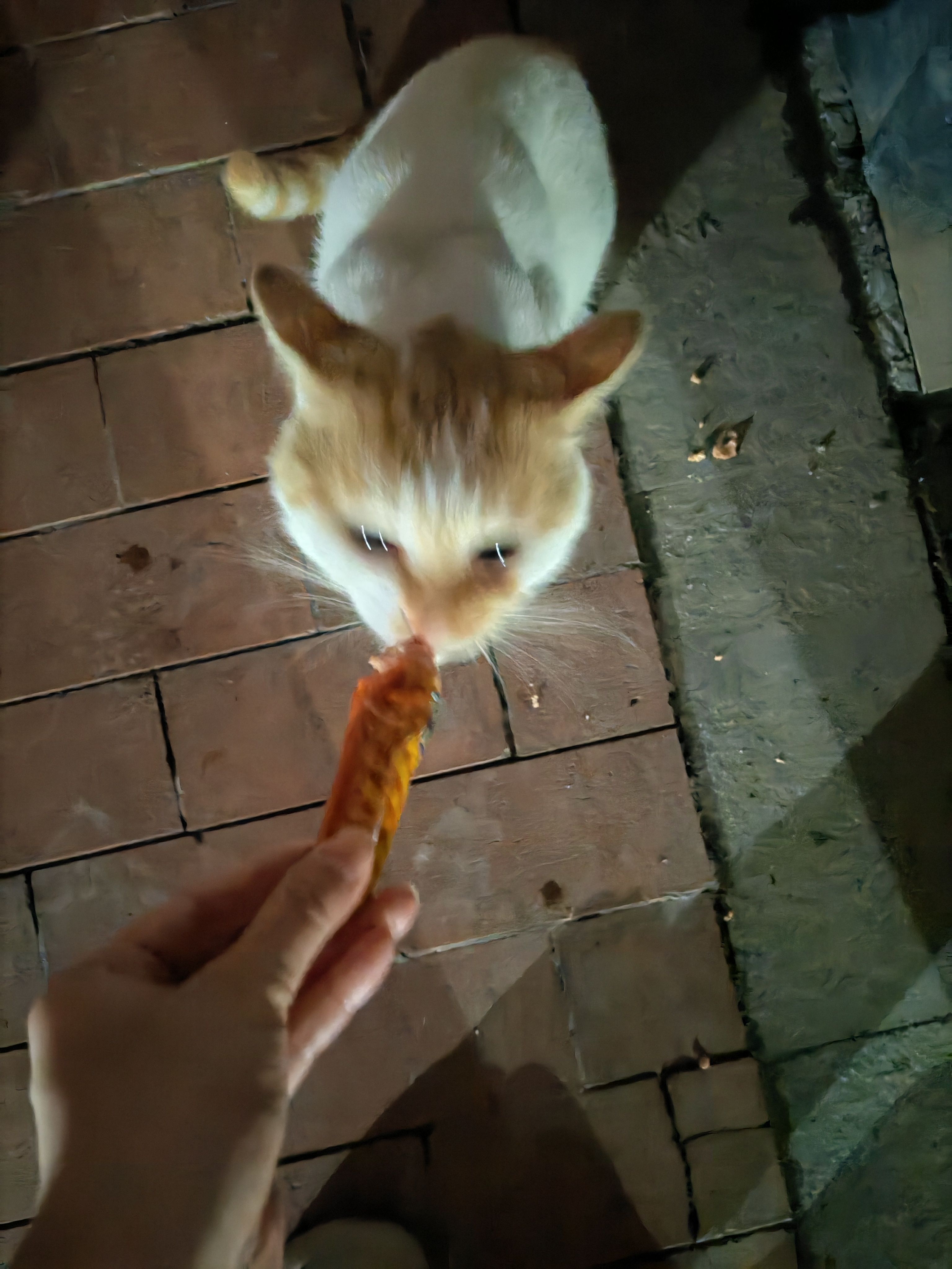 Part2⃣ :下楼扔垃圾,专门带了根火腿肠。在小区里转,本来还失望会不会没有偶遇,正巧在上次“把白塑料袋看成是白猫”(哈哈哈)的地方遇到了猫猫!应是饿坏了,也瘦不拉几的。猫眼亮晶晶的小可怜~有时间姐姐还给你上门送餐!