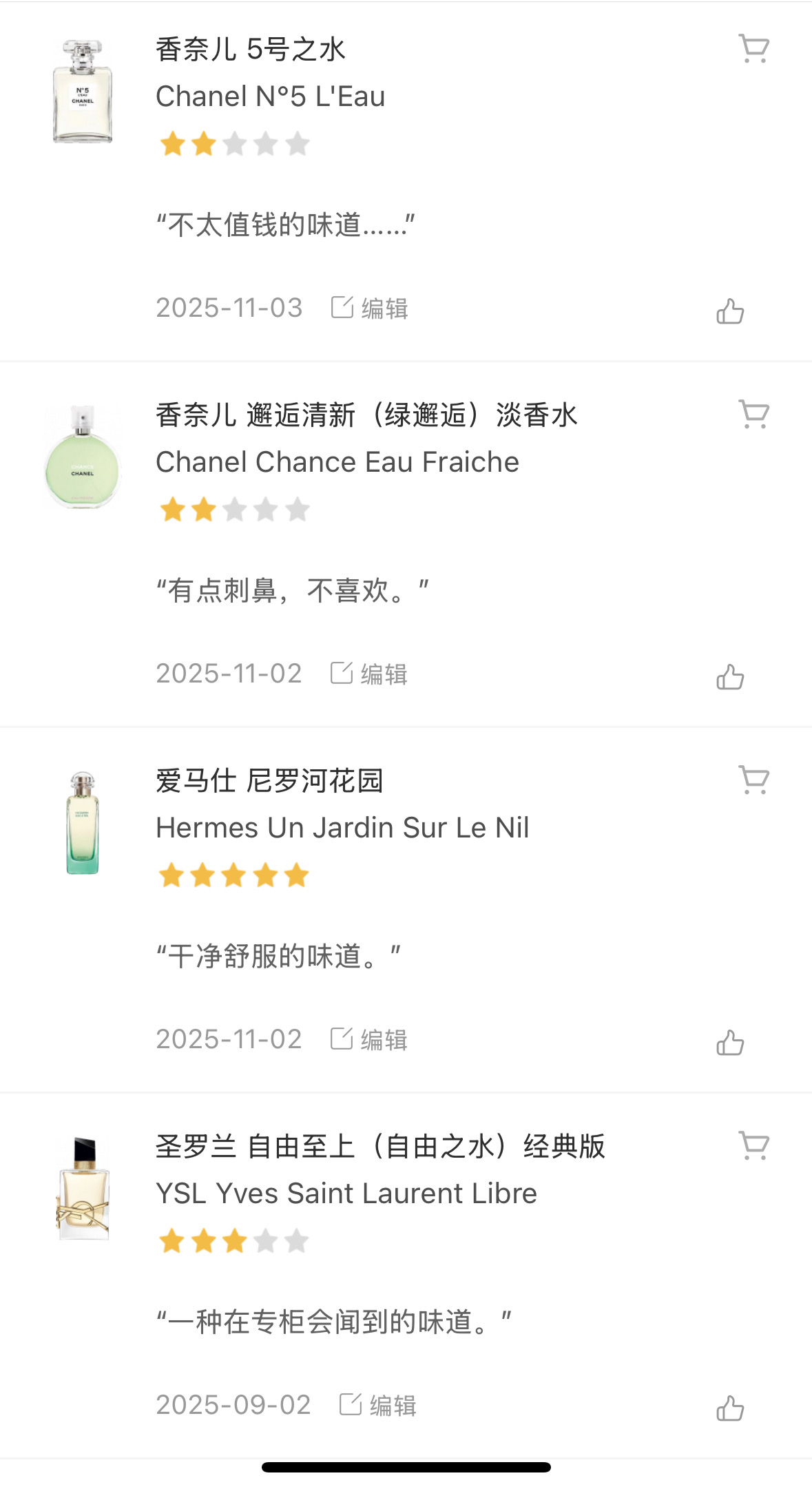 时隔两个月试用了四个大牌香水小样,怎么说,反而没有那么惊艳。除了爱马仕的尼罗河花园都比较一般(单纯个人喜好)。大牌香水没有想象中那么贵,比如尼罗河花园30ml看淘宝也就200(可能最近双十一)。