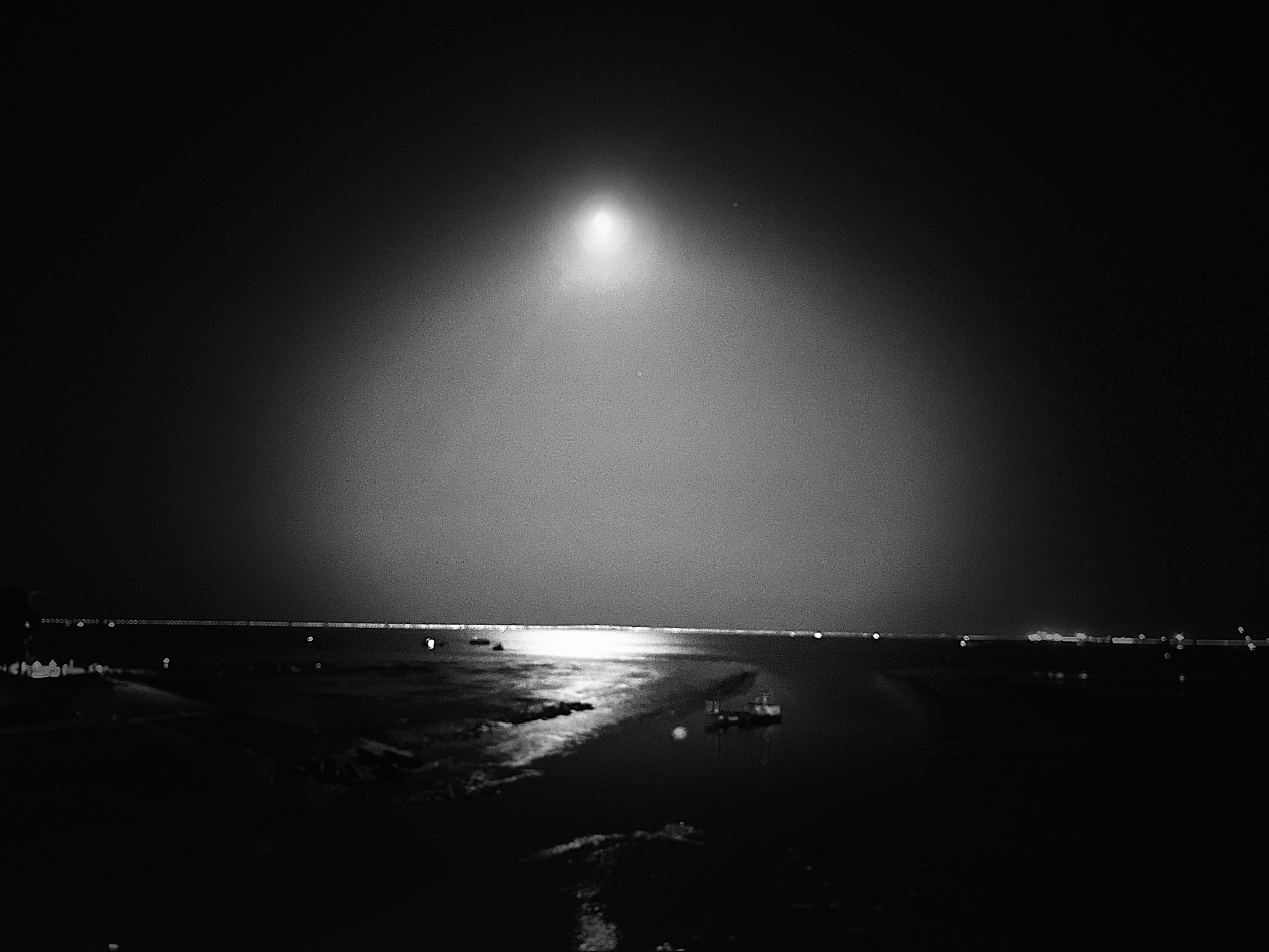 今晚打球走海边这条路,用相机的“人像”模式拍下的月亮