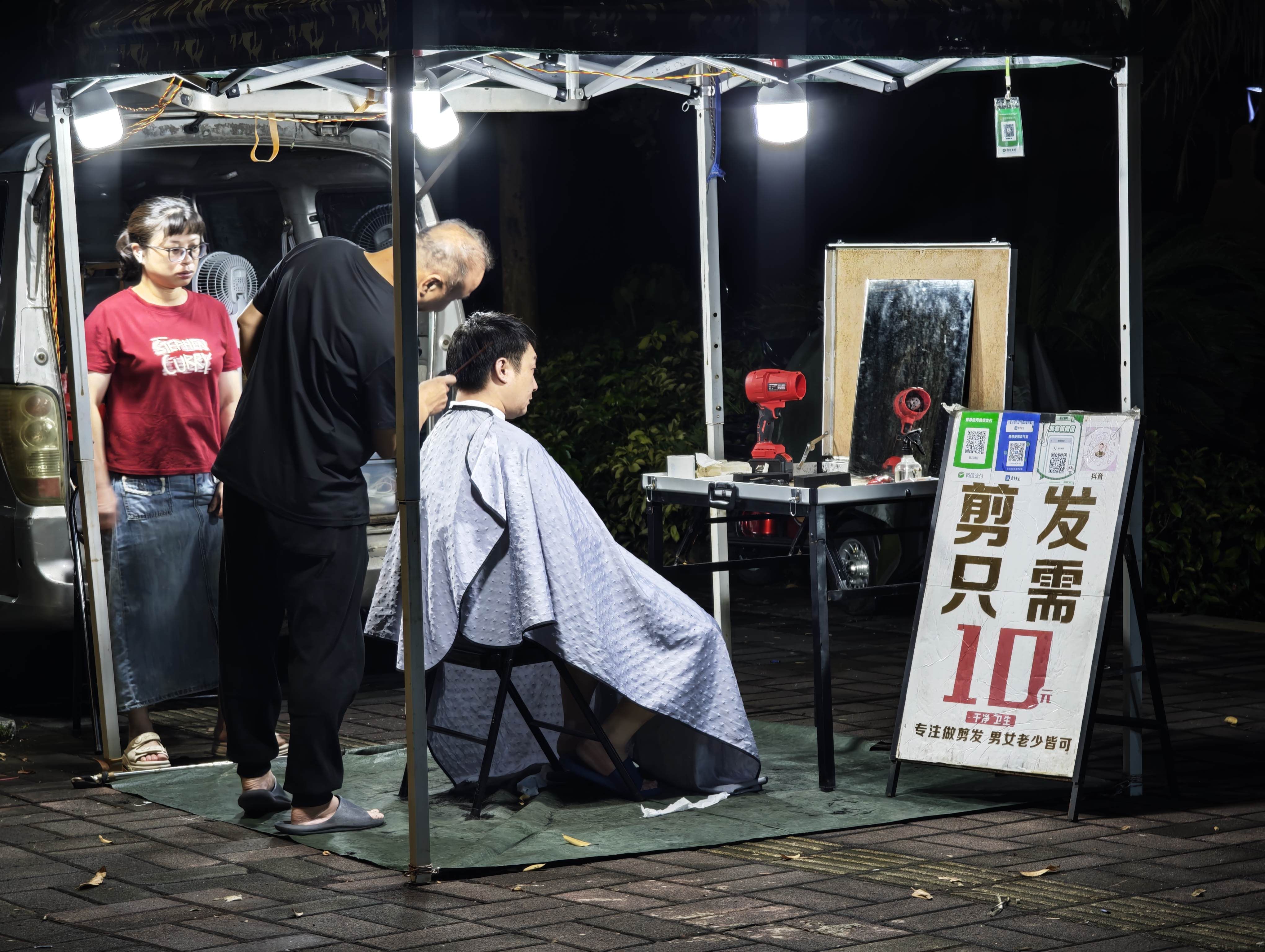 路口处 10 元剪发扎堆出现。