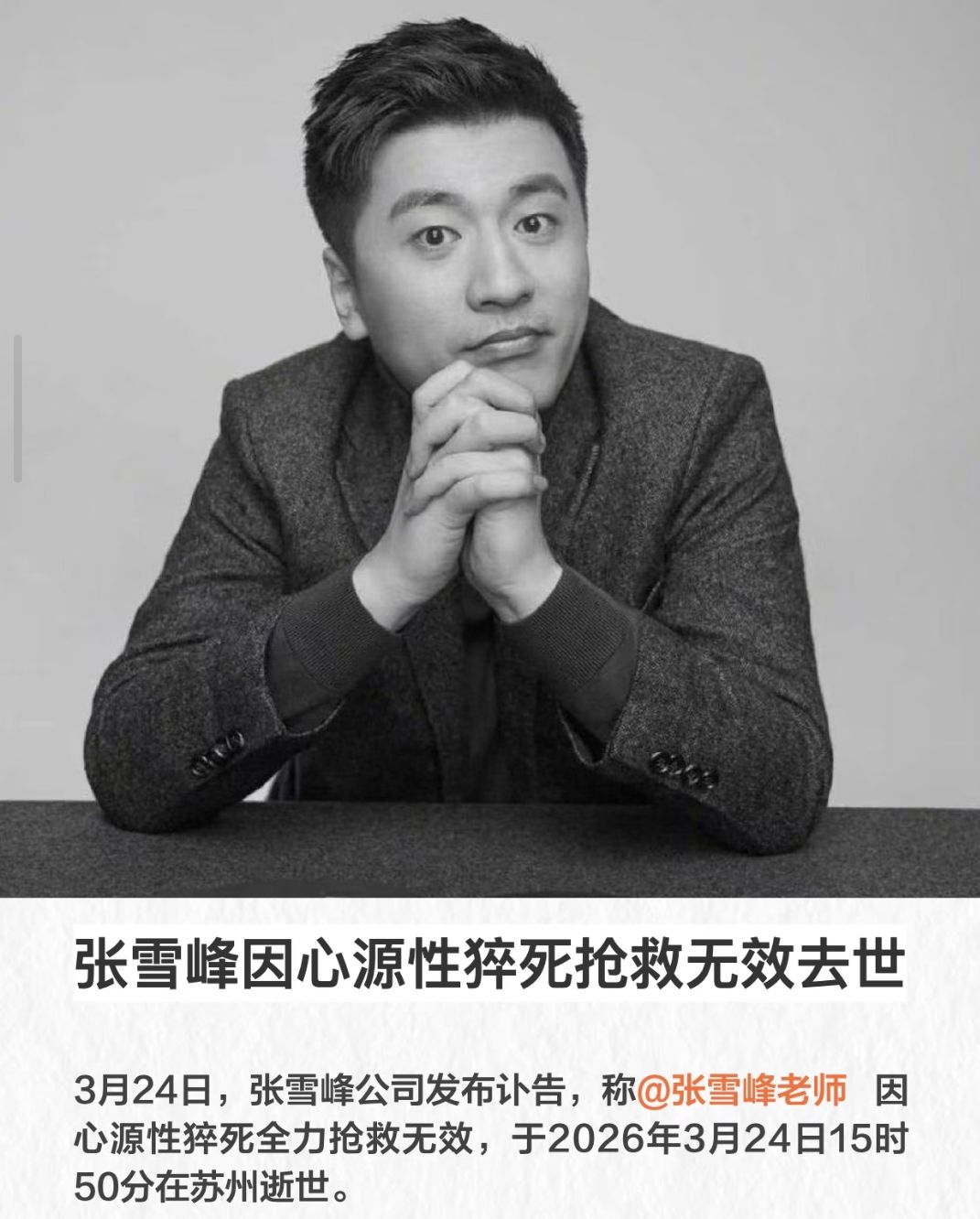 今天下午回家的时候,看到张雪峰老师说心脏骤停的消息,但我还觉得是假的,我不敢相信,又有人说他最近还在发朋友圈跑步,而且,我记得他很喜欢跑马拉松,我看过他的书和很多视频,包括我上大学的时候也看他对于专业的讲解。