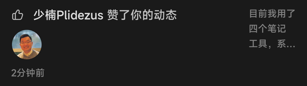 非常喜欢探索各种笔记软件,但其实想起来自己也没有输出内容的习惯,也没有整理自己知识库的动力和必要(因为脑阔里并没有多少知识),日常最多的输出就是在flomo上写写日记记录一下自己的状态和情绪。