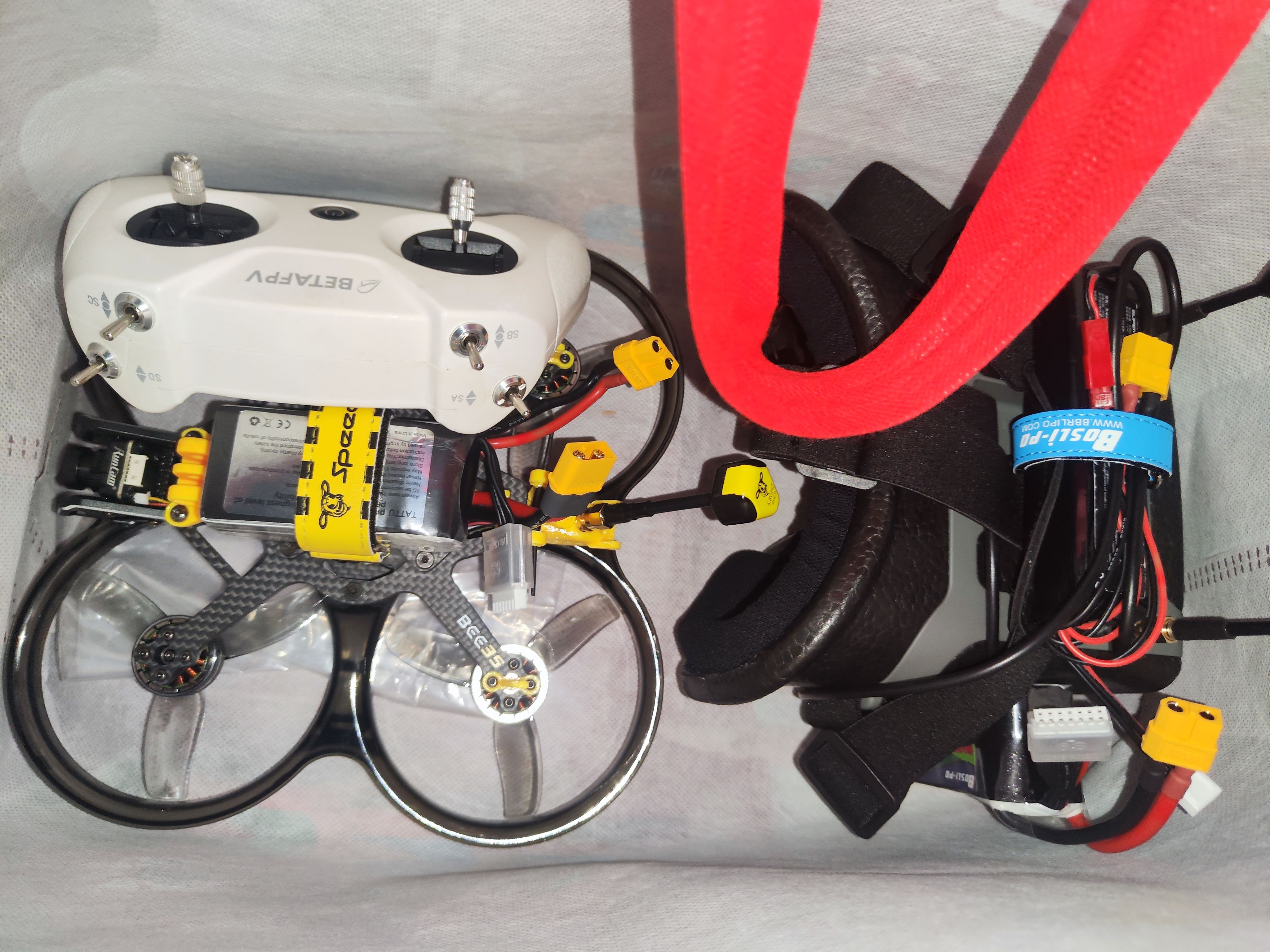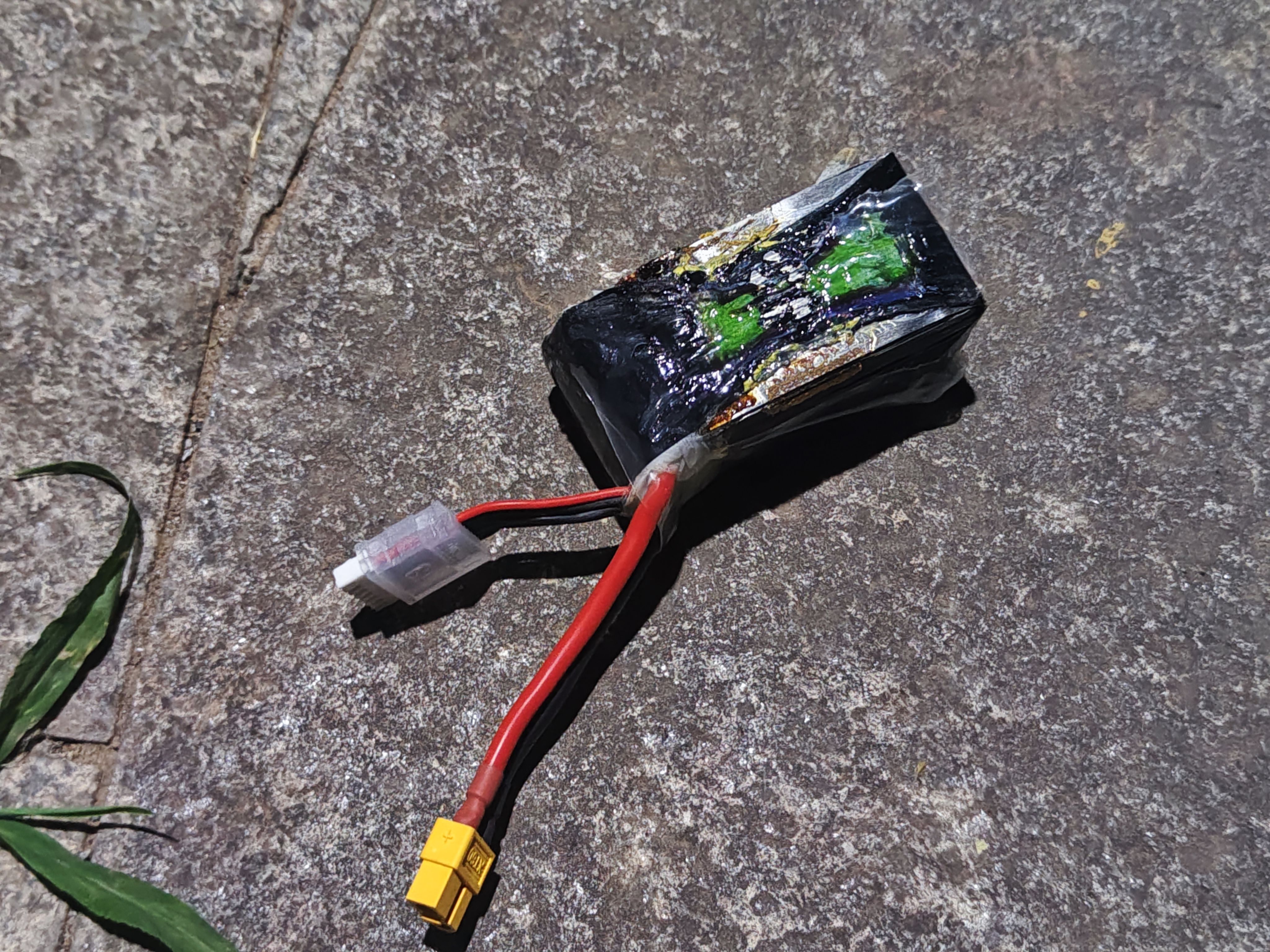 晚上出去练目视控高,碰到路灯,因为开着AirMode就往上吸,赶紧锁定,掉下来摔到电池直接冒烟。还好没烧坏飞机!